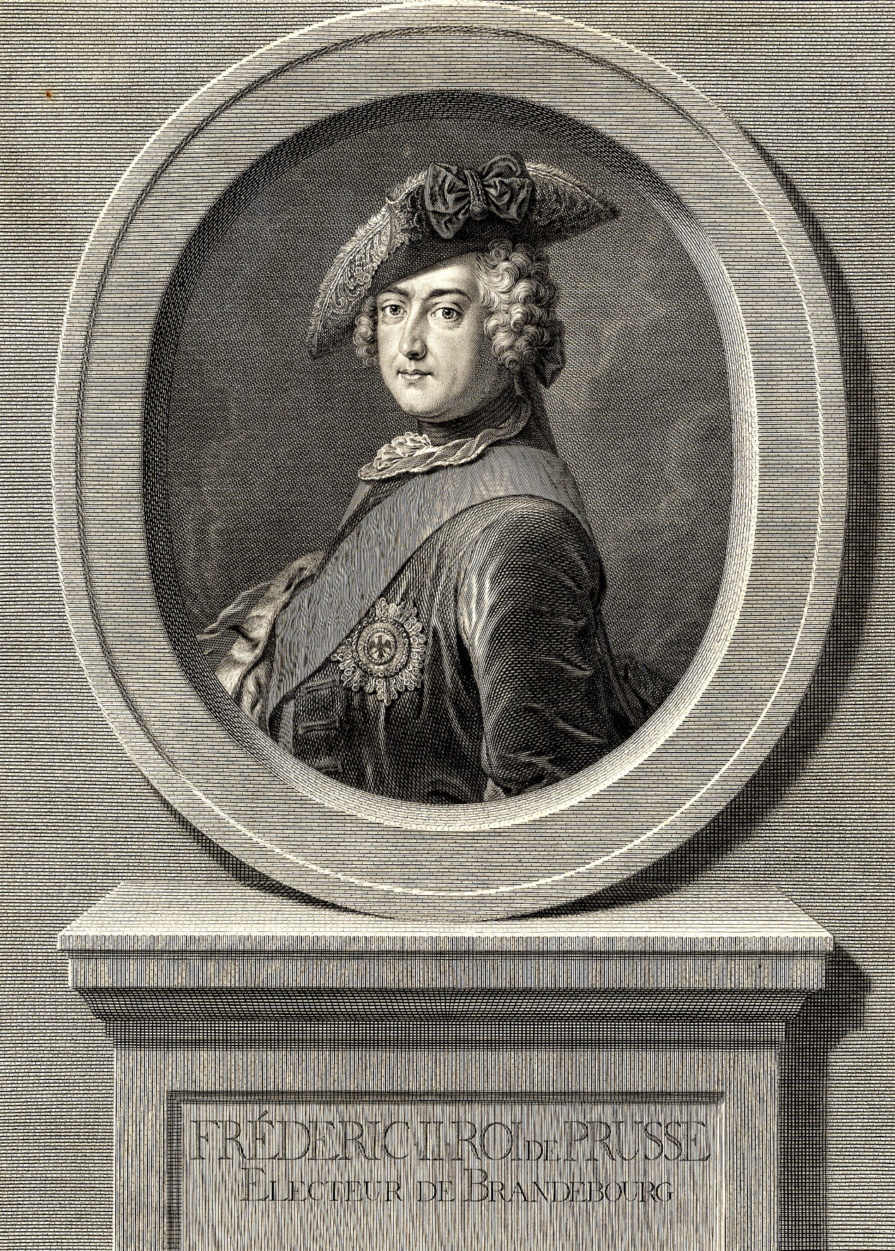 - Stadtarchiv Bielefeld, 400,11/Graphische Sammlung, Nr. 115: Fréderic II Roi de Prusse. Electeur de Brandenbourg, Stich von Johann Georg Wille nach einem Gemälde von Antoine Pesne, ca. 1750