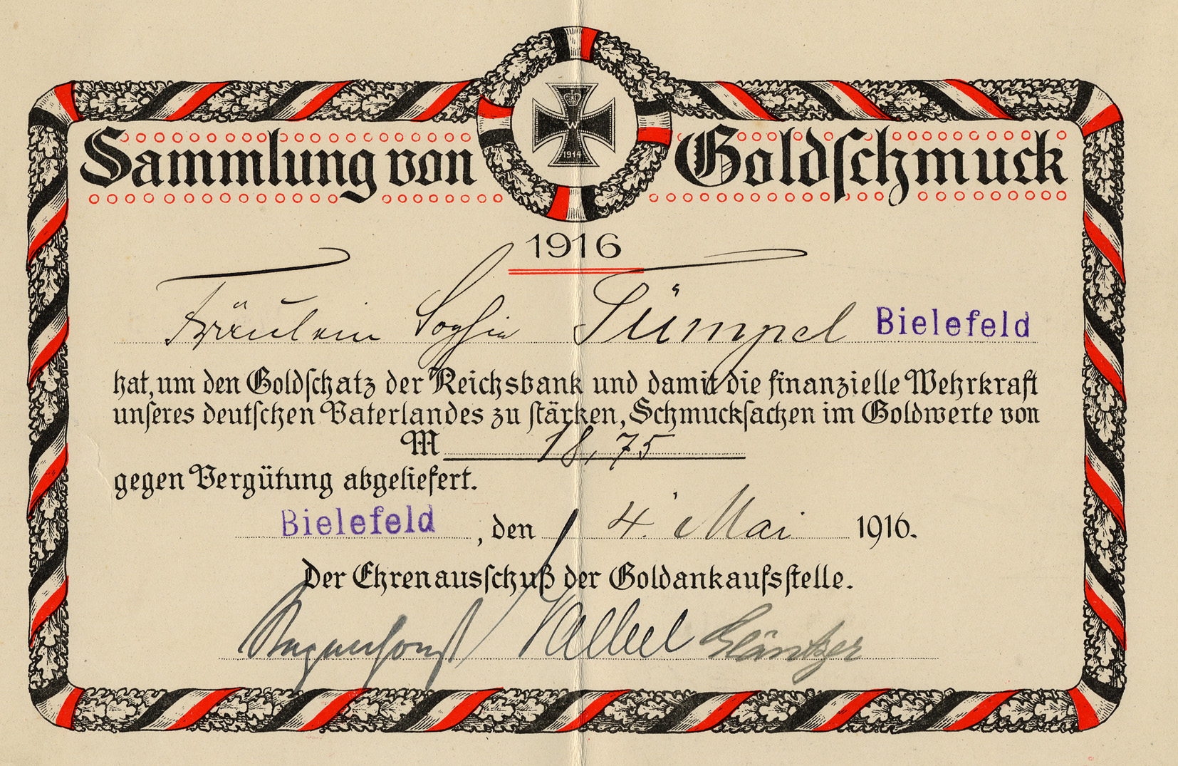 - Stadtarchiv Bielefeld, Bestand 101,7/Geschäftsstelle VII, Nr. 27: Kriegsanleihe (1915-1918)