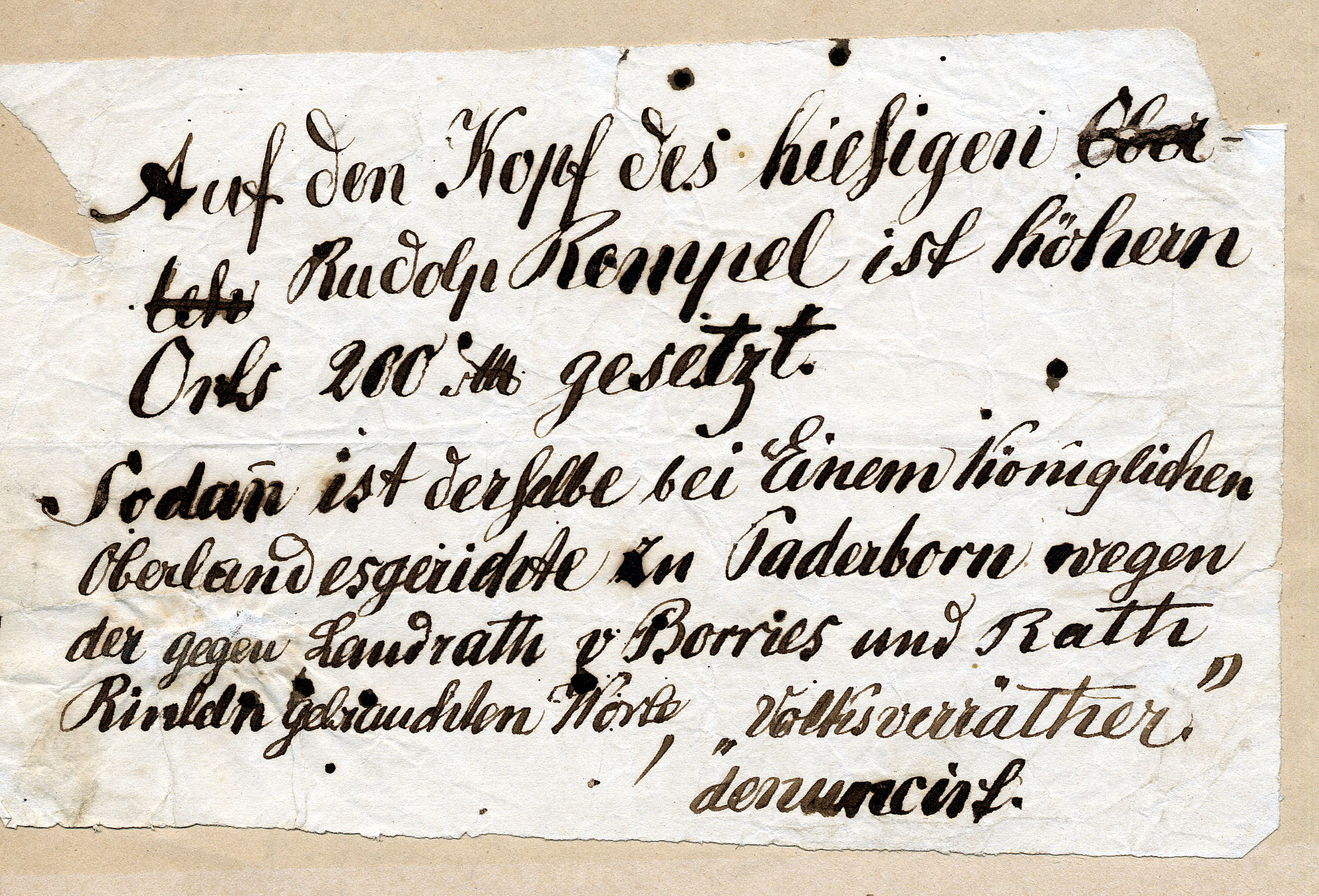 - 100,2/Ältere Akten, Nr. 415: Polizeiliche Überwachung des Rudolf Rempel (1848-1857)
