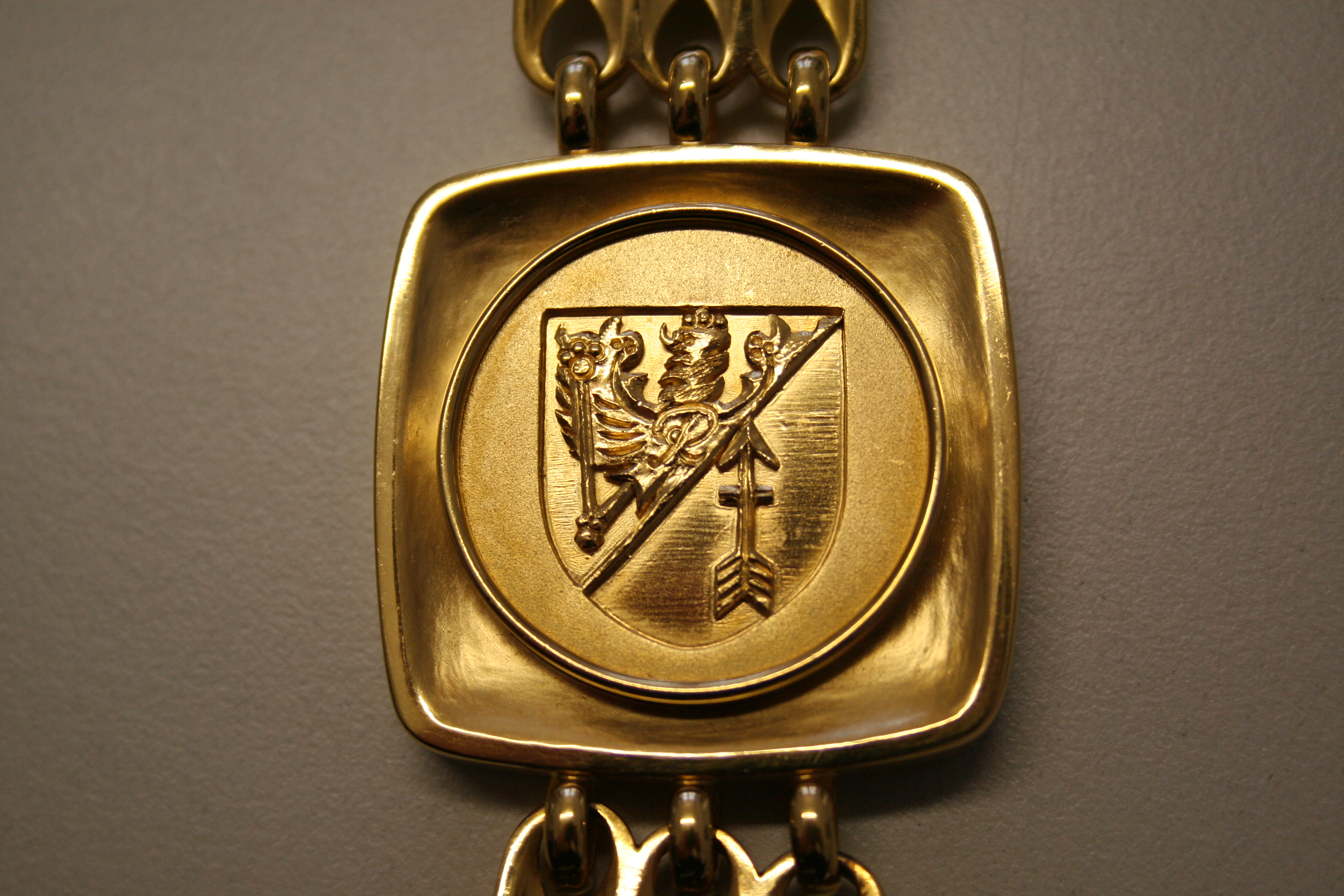 Bis heute hält die Kreisgemeinschaft Gumbinnen diese Versammlungen jährlich in Stieghorst ab. Und wer dem Bielefelder Oberbürgermeister bei einer festlichen Gelegenheit begegnet, wird an dessen Amtskette auch das Wappen der Stadt Gumbinnen erkennen, das neben neun anderen Wappen und Emblemen von Paten- und Partnerstädten als Zeichen der Völkerverständigung glänzt. Das 1722 verliehene schräglinks geteilte Wappen zeigt oben den schwarzen preußischen Adler mit seinen Attributen und unten einen steigenden, schwarzen Pfeil. Die russische Stadt Gusev hat das Wappen freilich verändert, indem es aus nachvollziehbaren Gründen den Preußenadler durch den unpolitisch daherschreitenden Elch ersetzt hat.