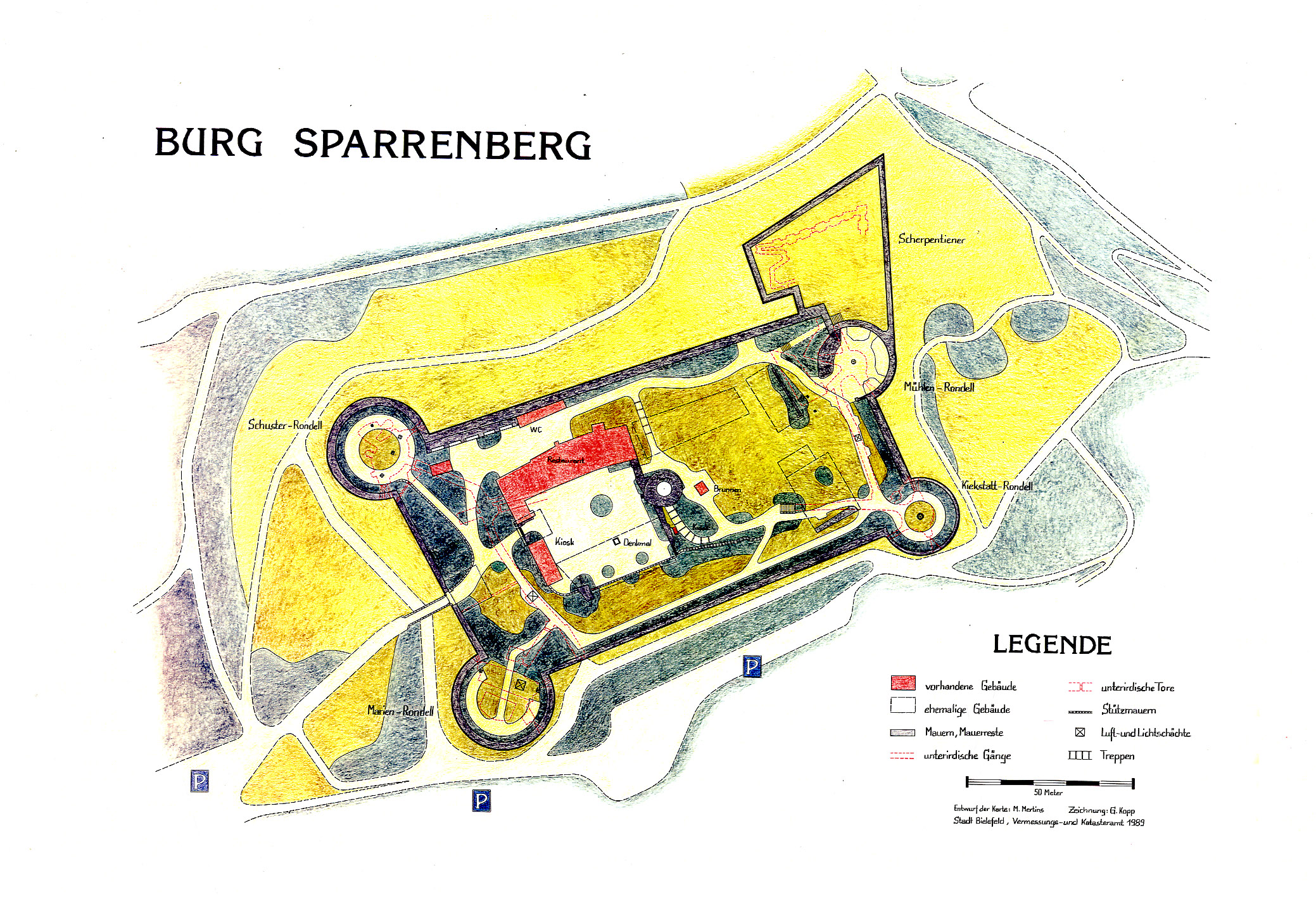„Scherpentiner“: Weltweit existiert der Ausdruck nur ein einziges Mal – und zwar in Bielefeld. Der Scherpentiner, jene imposante westliche Bastion der Burg Sparrenberg sicherte seit der Mitte des 16. Jahrhunderts den damals strategisch wichtigen Bielefelder Pass. Erbaut haben ihn Hunderte von Arbeitern, entworfen hat ihn der italienische Festungsbaumeister Alessandro Pasqualini, der vor September 1559 in Bielefeld verstarb.