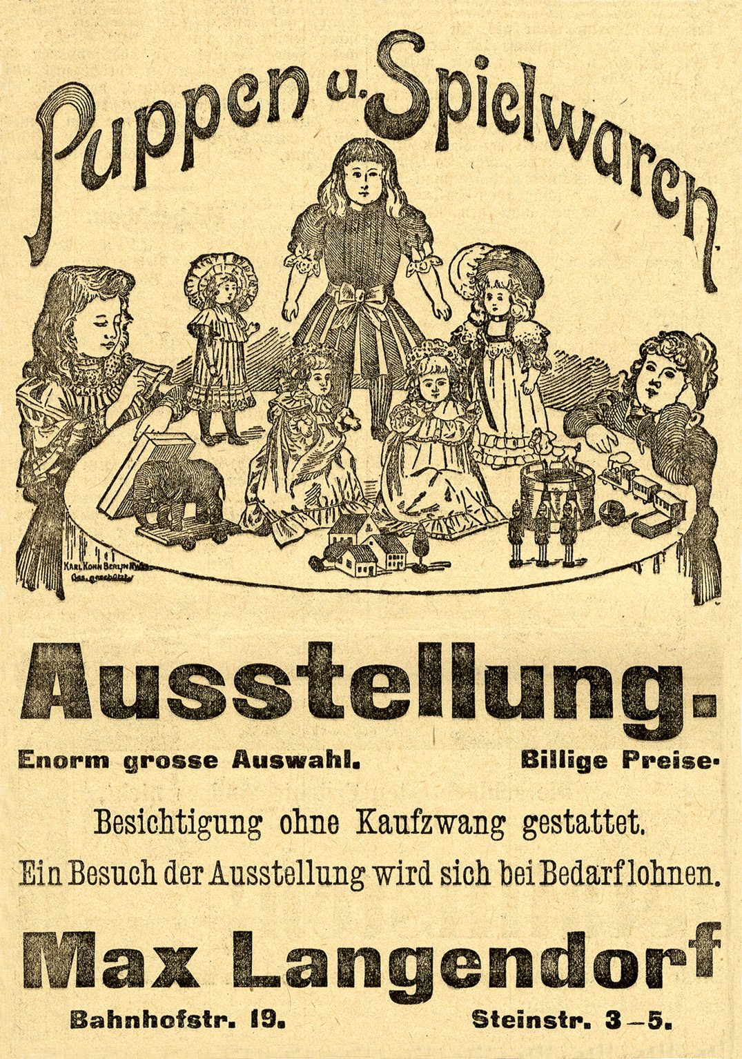Während die großen Geschäfte mit besonderen weihnachtlichen Dekorationen die Kinderherzen höher schlagen ließen, luden die Spielwarengeschäfte den Nachwuchs ein, endlich das zu sehen, wovon man bisher nur träumen durfte. Weil kein Geldbeutel alle Kinderwünsche erfüllen konnte, beruhigte die Annonce des Fachgeschäftes von Max Langendorf, dass die „Besichtigung ohne Kaufzwang gestattet” sei. Heinrich Ludewig, der sein Geschäft an der Rathausstraße führte, gab in seinem Inserat Kaufempfehlungen bekannt: „Ich empfehle für Knaben”, so war zu lesen, außer Ingenieur-Baukästen und Eisenbahnen auf Schienen unter anderem auch Festungen, Soldaten, Helme, Säbel und Gewehre. Das ging der sozialdemokratischen „Volkswacht” zu weit. Eltern, „die der modernen Arbeiterbewegung angehören”, sollten „nie etwas kaufen, was die Kinderseelen auf falsche Bahnen lenken könnte. Dazu rechnen wir die Miniaturmordwerkzeuge, wenn es auch nur Spielsachen sind. Das Kriegspielen hat noch nie uns Großen etwas eingebracht, wieviel weniger den Kleinen. Pflanzen wir nichts in die Kinderseelen hinein, was uns später gereuen könnte.”