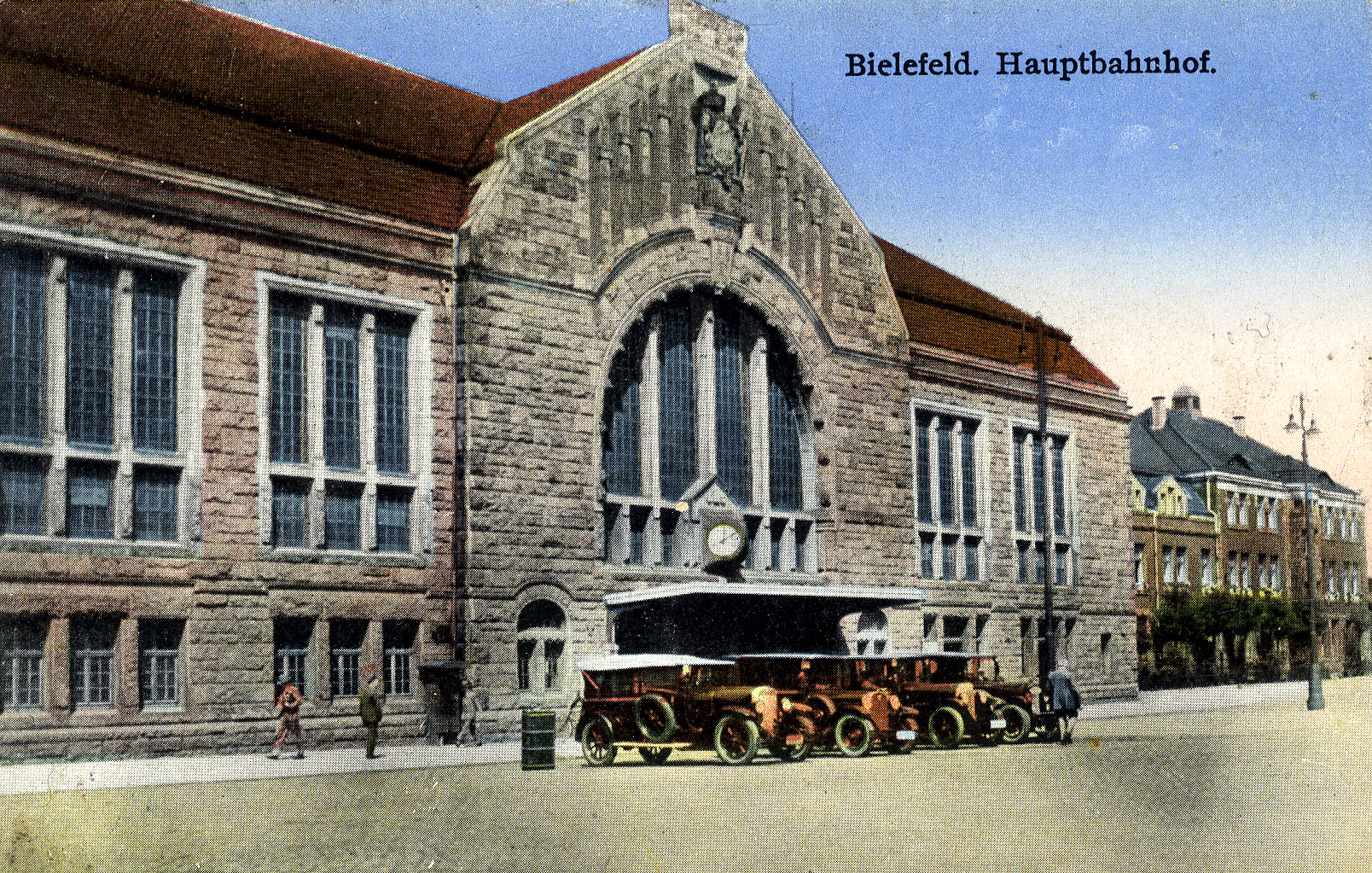 Die Eisenbahn hatte sich inzwischen zum wichtigsten Transportmittel für Personen und Güter entfaltet, so dass sich über viele Jahre weitere Umbaumaßnahmen anschlossen. Damit der Verkehr nicht allzu großen Störungen unterliegen musste, hatte man sich dazu entschieden, in Abschnitten zu bauen. Im Verwaltungsbericht der Stadt Bielefeld ist 1906 zu lesen: „Mit den baulichen Arbeiten, die infolge der Erweiterung des Hauptbahnhofes und des Neubaus des Empfangsgebäudes erforderlich werden, ist begonnen worden. […] Von neuen Gebäuden sind in Angriff genommen und werden im nächsten Jahr fertig: ein neuer Lokomotivschuppen, ein neuer Wasserturm, ein neues Ueberwachungsgebäude für Zugbegleitungspersonal, ein neuer Versandgüterschuppen und ein neues Abfertigungsgebäude. Mit dem Neubau des Hauptbahnhofsgebäude ist noch nicht begonnen.” Erst ein Jahr später – nach Fertigstellung u. a. von Reparaturwerkstatt, Dienstwohngebäude und Räumlichkeiten für die Bahnmeistereien – wurde der erste Spatenstich für den Bau der Empfangshalle getätigt. Vier Millionen Reichsmark waren für den Neubau bewilligt worden.