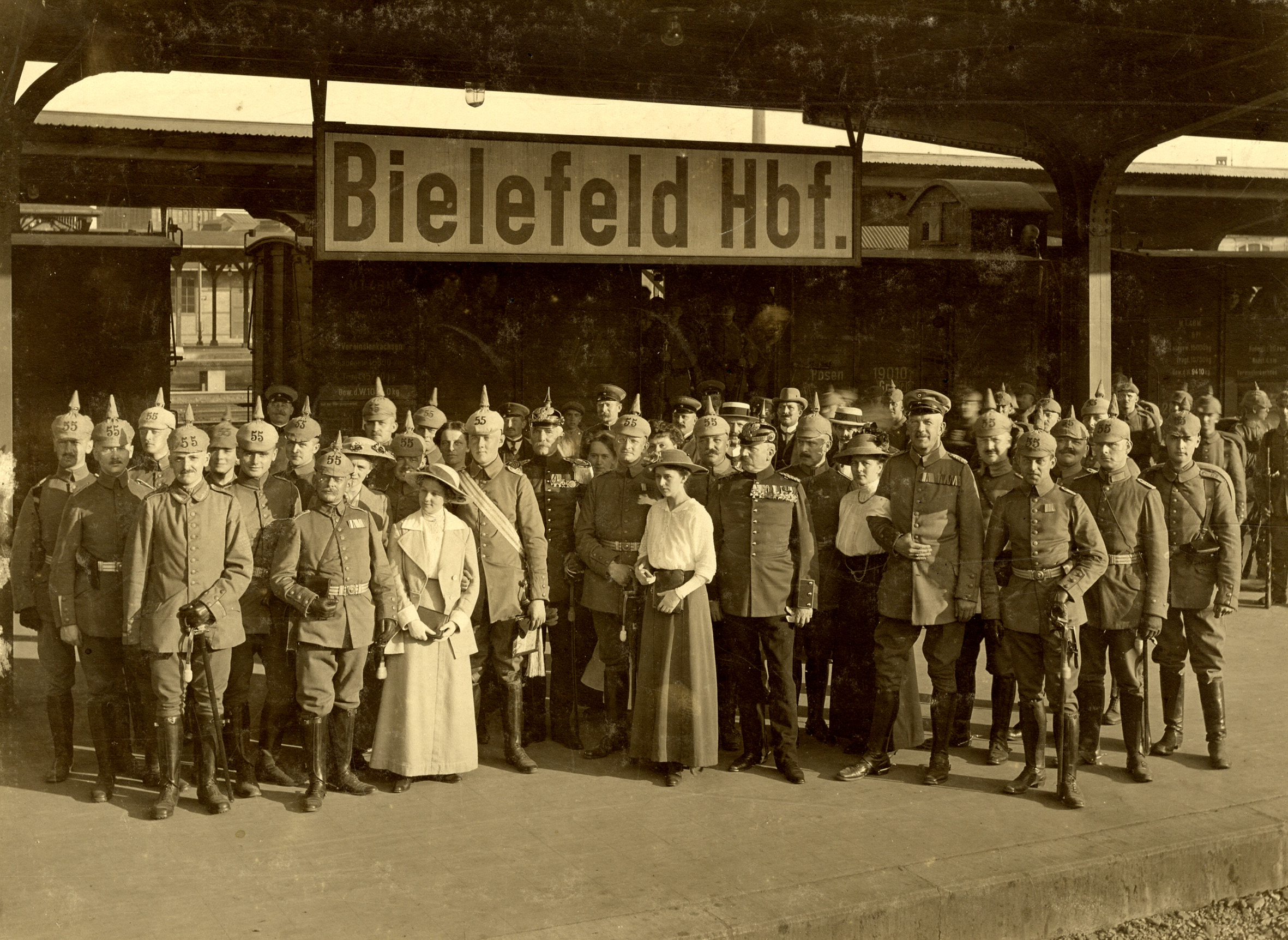 Die am 1. August 1914 um 18.30 Uhr angeordnete Mobilmachung war das eigentliche Ereignis, das den Krieg nach Bielefeld brachte. Am 10. August verließ das II. Bataillon des Infanterie-Regiments von Dennewitz (6. Westfälisches) Nr. 55 die Stadt. Unmittelbar darauf rückte das II. Bataillon des zu 75 % aus Bielefeldern und der unmittelbaren Umgebung rekrutierten Reserve-Infanterie-Regiments 15 mit soeben geweihter Fahne und Orchesterbegleitung aus. Vom Bahnhof aus ging es an die Westfront. Ende August folgte das Landsturmbataillon Bielefeld. Die Kriegsbegeisterung in Bielefeld war enorm: Fast alle Oberprimaner des Gymnasiums legten innerhalb weniger Tage ein ärztliches Attest und die Erlaubnis ihrer Väter vor, vorzeitig die Schule verlassen und „als Freiwillige in den Heeresdienst” eintreten zu dürfen.