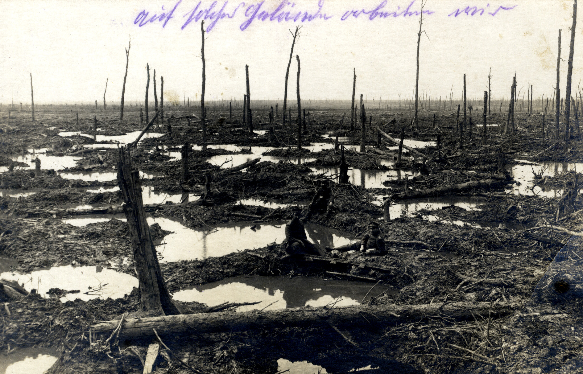 Was ein Maschinengewehr tatsächlich anrichten konnte, hatte man freilich bereits lesen können. Ein Soldat einer Maschinengewehr-Kompanie hatte in den Ravensberger Blättern 1915 über einen Einsatz berichtet: „Im Argonnenwald, 2.10.1914: Wie das Volk schreit nach Brot, so die Infanterie nach Maschinengewehren. Denn wir sollen alles schaffen. – Wir also rin in die Stellung und gepfeffert. Bei dem Zuge links, wo ich mich befand, waren auf 30 Schritt Franzosen zu sehen, wir dazwischen gesengt. Tagsdrauf sah ich mir mal die Wirkung an. Vernichtend! Anscheinend versuchten diese Kerle an dieser Stelle einen Durchbruch mit Kolonnen, in dem Augenblick als wir sie faßten. Wie hingemäht lagen sie da, eine solche Wirkung habe ich noch nicht gesehen. Mann neben Mann tot, Kopfschuß, manche einfach durchsiebt. In Hunderten lagen sie dort, grauenhaft, doch man gewöhnt sich dran. Wir freuten uns sogar. Das klingt vielleicht roh. Man muß sich aber dabei sagen, wie viele von unseren Kerls haben die Hunde umgebracht.“ Feldpostbriefe wie dieser durchliefen eine in ihrer Wirkung offensichtlich überschätzte Zensur bis hin zur Veröffentlichung ohne Mühe und beschrieben das Frontgeschehen schonungslos und ungleich authentischer als die Erdarbeiten und Kommentierungen auf der Ochsenheide.
