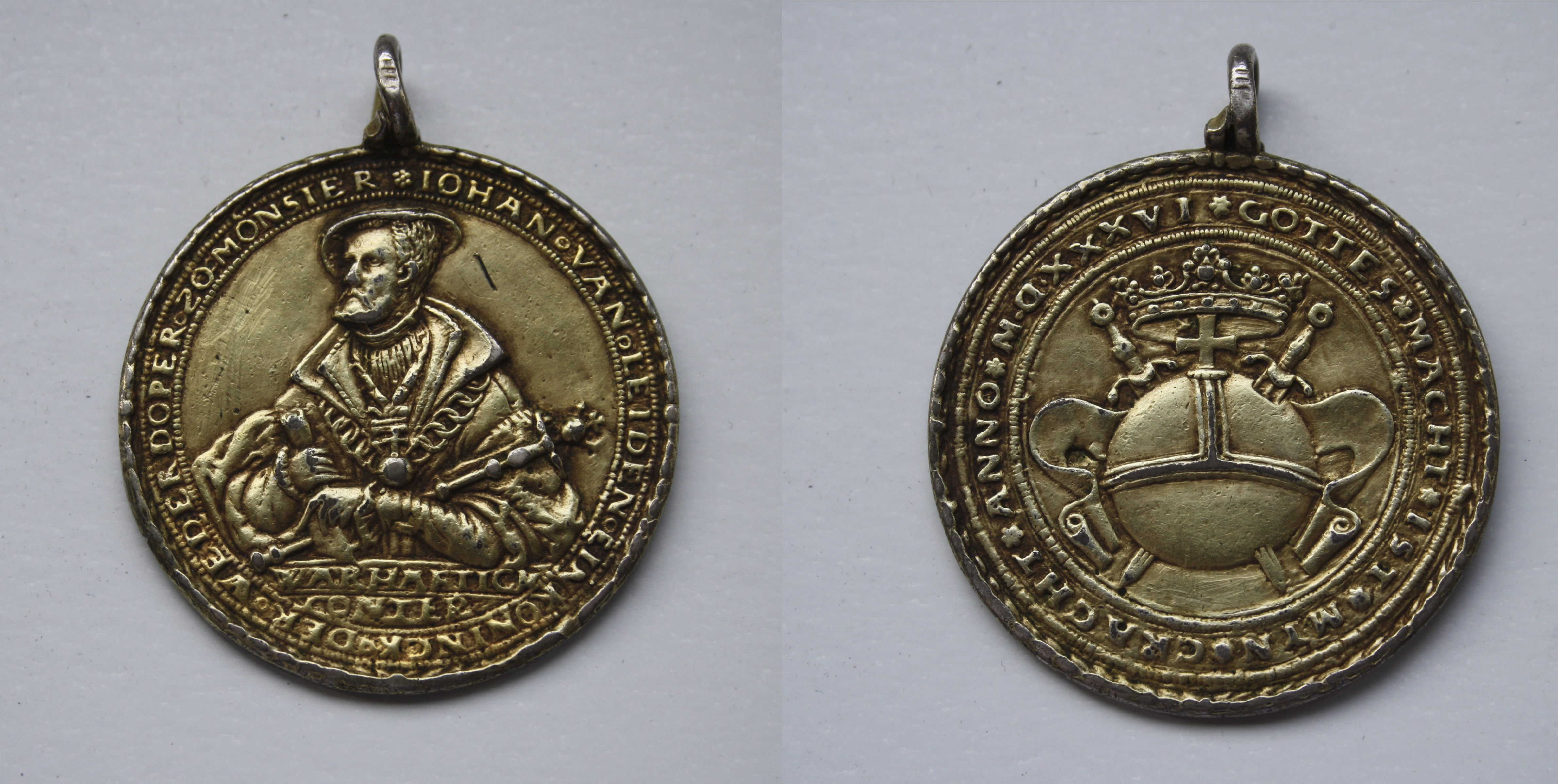 - Stadtarchiv Bielefeld, Bestand 400,13/Anstecknadeln, Medaillen und Plaketten, Nr. 18: Medaille auf Jan van Leiden, (1536) Mitte 16. Jahrhundert