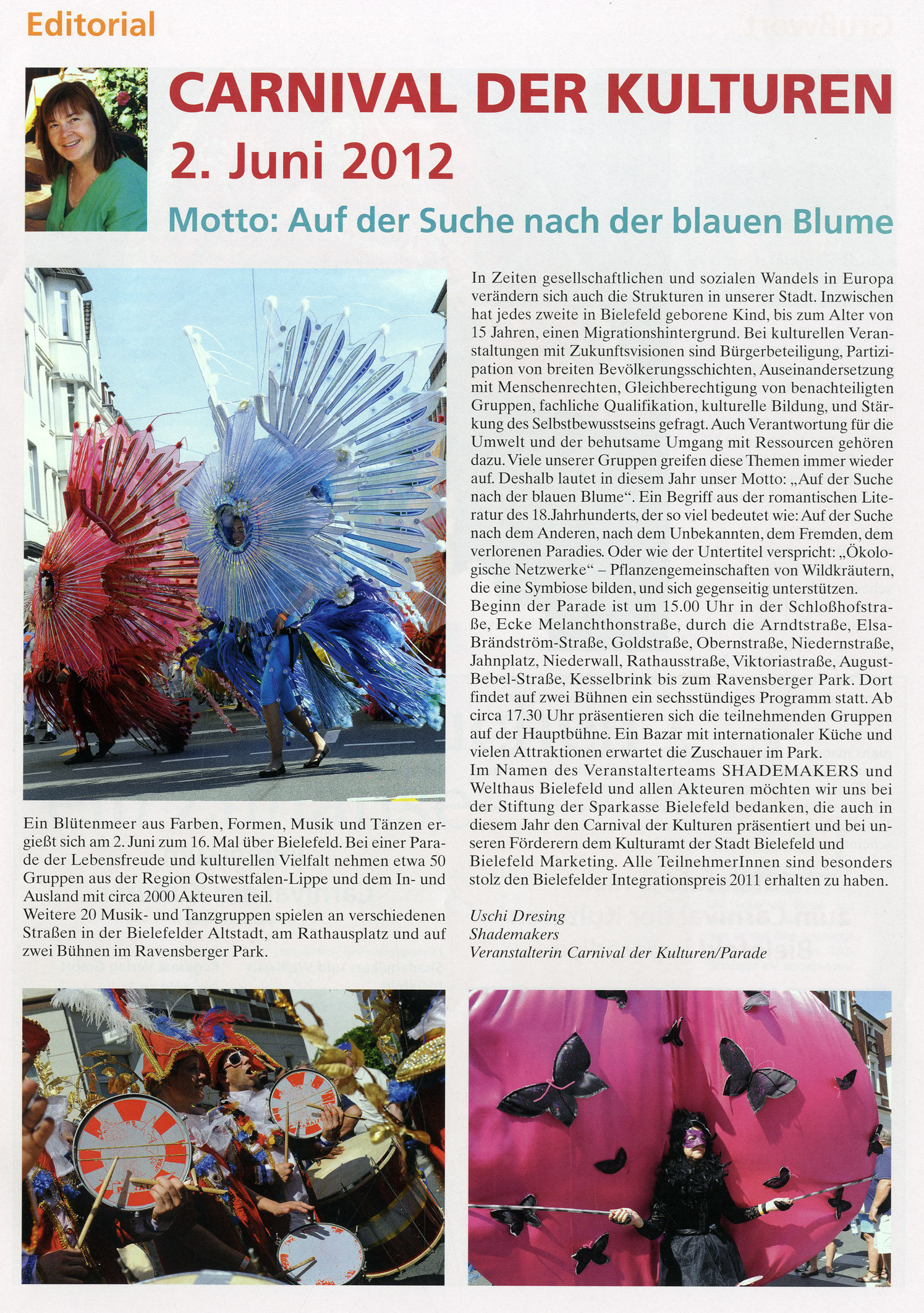 - Lebensfreude pur. Carnival der Kulturen, in: Bielefelder Spiegel 2004, Heft 11, S. 4 f.
