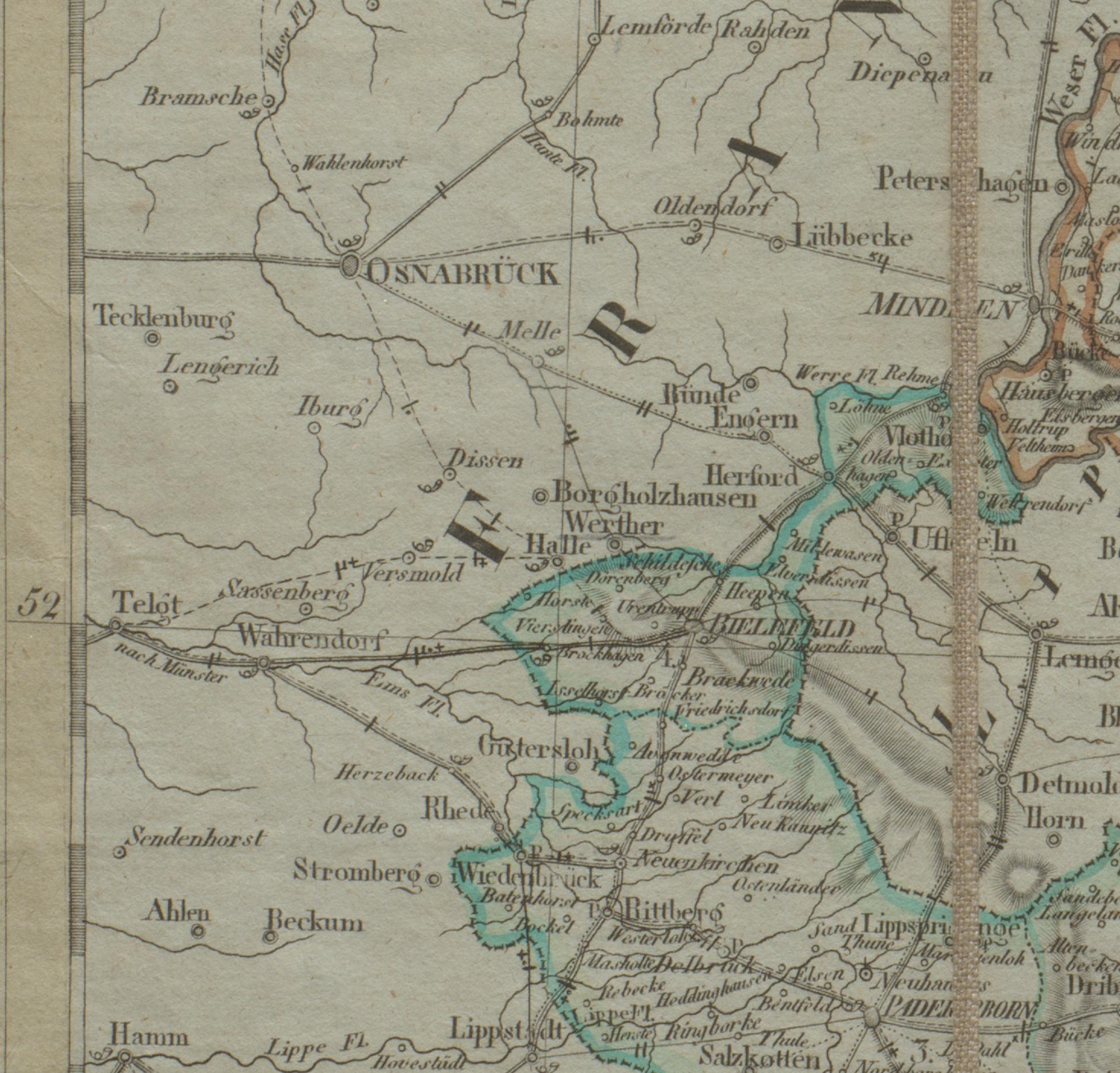 - Stadtarchiv Bielefeld, Bestand 400,8/Karten und Pläne, Nr. 34: General-Charte von dem Königreiche Westphalen […], 1812