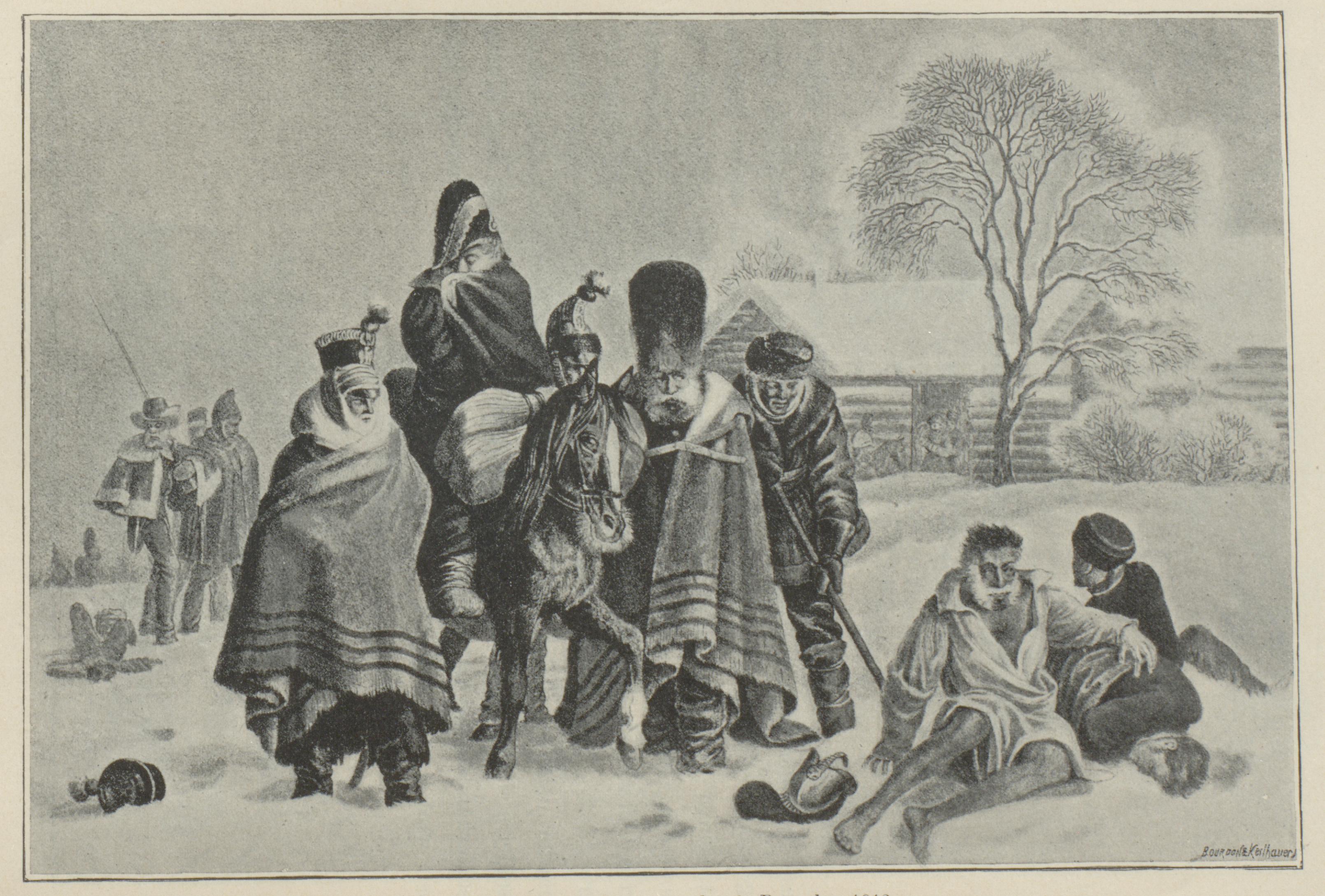 Der Rückzug der Grande Armée führte durch den Anfang November eingebrochenen Winter mit Temperaturen von bis zu – 37 o C, wurde begleitet von zaghaften Attacken der russischen Truppen, deren Generäle weiterhin Respekt vor dem taktischen Talent Napoleons hatten. Nur so ist es zu erklären, dass die mehrtägige Schlacht an der Beresina Ende November 1812 nicht mit der endgültigen Vernichtung der Grande Armée endete. Von 70 000 Soldaten, die die angelegten Pontonbrücken erreicht hatten, starben 30 000. Die Not förderte z. T. niedrigste Instinkte zu Tage: Raub, Vergewaltigung, Mord – Kannibalismus. Die Grande Armée war geschlagen, Napoleon hatte die Reste der Truppe Anfang Dezember 1812 verlassen, nachdem in Frankreich Putschgerüchte aufgekommen waren. Zurück blieben die Gefallenen, Erfrorenen und Verhungerten beider Seiten, schätzungsweise 1 Million Menschen. Im 29. Bulletin der Grande Armée vom 17. Dezember 1812 schob Napoleon das beispiellose Desaster vor allem den verheerenden Wetterbedingungen zu, von einer grundsätzlichen strategischen Fehlentscheidung war mit keinem Wort die Rede. Die Verlautbarung endete mit der beruhigenden Nachricht: „La santé de Sa Majesté n’a jamais été meilleure.“ – „Die Gesundheit Seiner Majestät war niemals besser“.