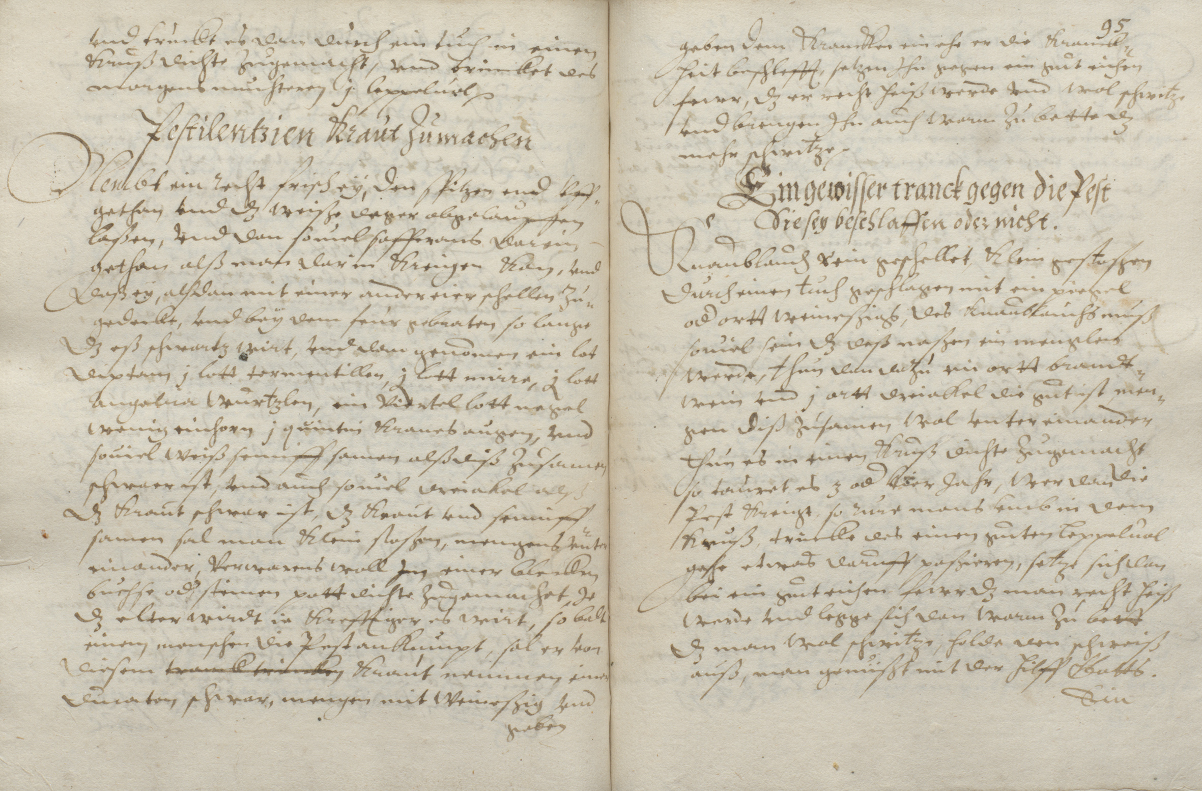 Die Auswahl der Ingredienzien und Zubereitung der Präparate würde in Deutschland heute gleich an mehreren Gesetzen scheitern, ein Antrag auf Zulassung demnach chancenlos sein. So wird gegen „S. Kryeß Werck” (wohl St. Quirins-Marter = Pest) empfohlen, einen „goer oder Maulwurf” in einem (wichtig!) unbenutzten Steintopf zu braten, anschließend zu Pulver zu zerstoßen und mit anderen Zutaten „mit heiligem waßer oder bier” zu verabreichen – wenn´s hilft … Überhaupt kommen die Empfehlungen und Arzneien nicht durchweg ohne göttlichen Beistand aus, wie z. B. eine „gewiße medicin für alle kranckheit binnen des leibes, wissend oder unwissend”, die aus zerriebenen und in Wein aufgeschäumten Wacholderbeeren bestand: „so wirtz vermittels Gottlich hilff beßer.” Auch musste ein ausgeprägter Wunderglaube denen helfen, die „vergeben oder bezaubert sein” (ein Mittel gegen Liebeskummer?).