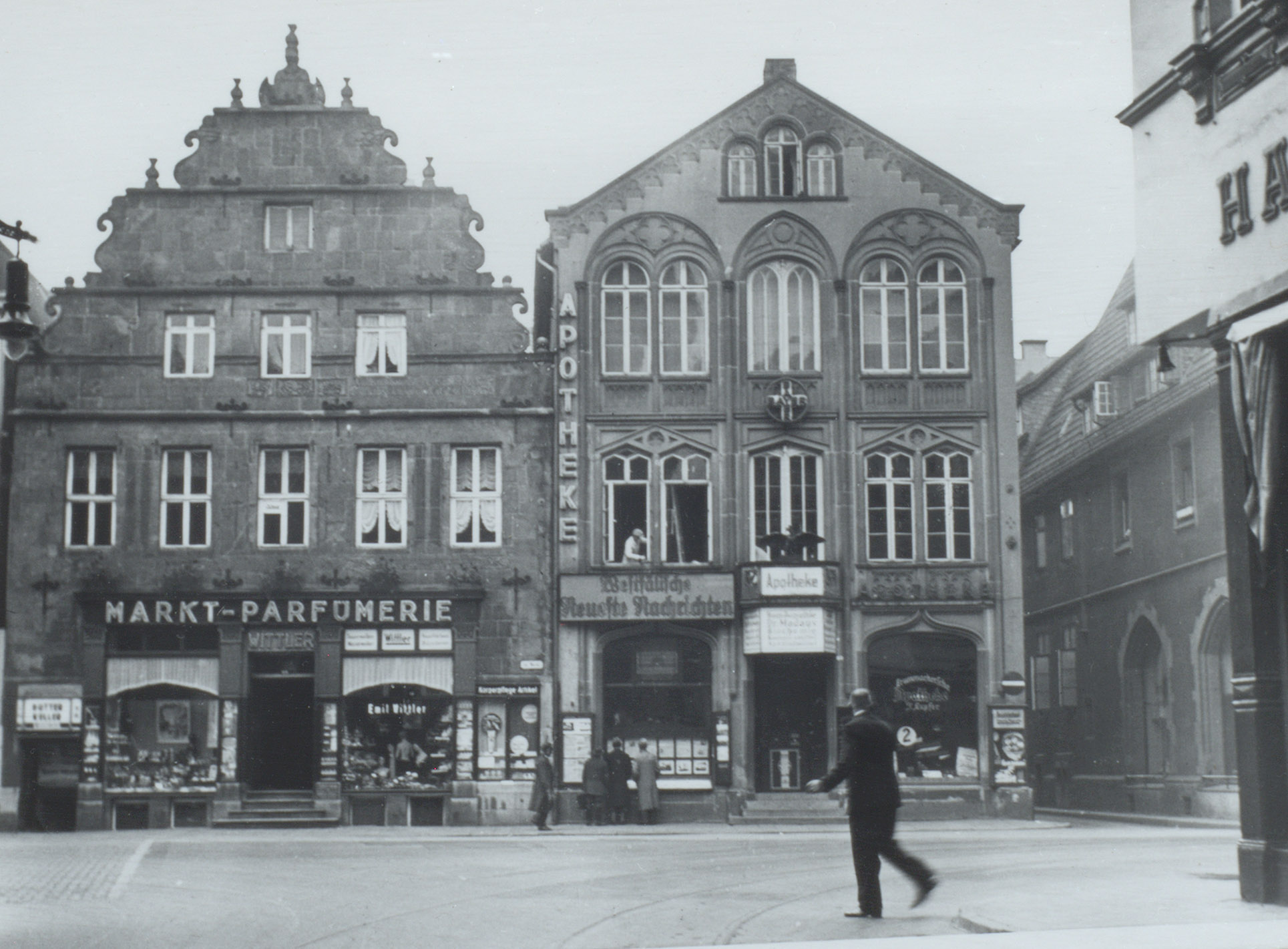 Ersterwähnungen leiten sich häufig aus indirekten Hinweisen ab, so auch im Fall der Apotheke am Alten Markt in Bielefeld: Der ortsansässige Apotheker Bernhard Flochmann beschwerte sich am 13. Juli 1663 bei der kurbrandenburgischen Regierung über den Rat Bielefelds, nachdem dieser ihm bei Geldstrafe verboten hatte, seine im April eingerichtete Apotheke weiter zu führen. Denn, so die Stadtoberen, es existiere bereits die Apotheke des Anton von Segern am Platz. Offensichtlich sollte diese für die rund 3.000 Einwohner ausreichen. Die Apotheke von Segerns war in den Amtsperioden des Statthalters Prinz Moritz von Nassau-Siegen entweder zwischen 1647 und 1649 oder zwischen 1658 und 1663 privilegiert worden, nachweislich ersterwähnt ist sie jedoch in der Beschwerde Flochmanns. Letzterer behielt übrigens Recht: Die landesherrliche Regierung rügte das Verhalten der Stadt, indem sie ihr das Recht absprach, Geschäftsverbote oder überhaupt Apothekenprivilegierungen zu erteilen.