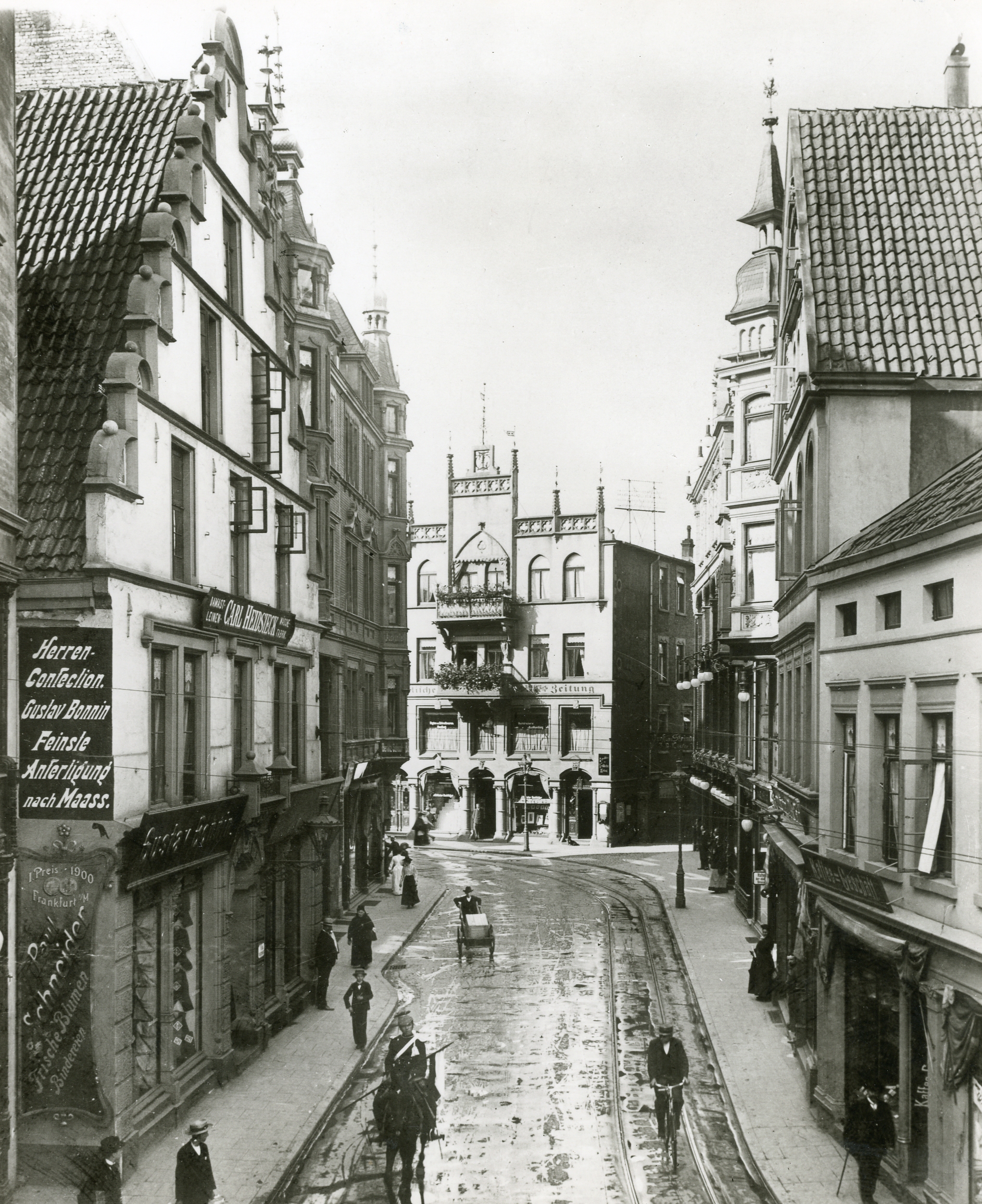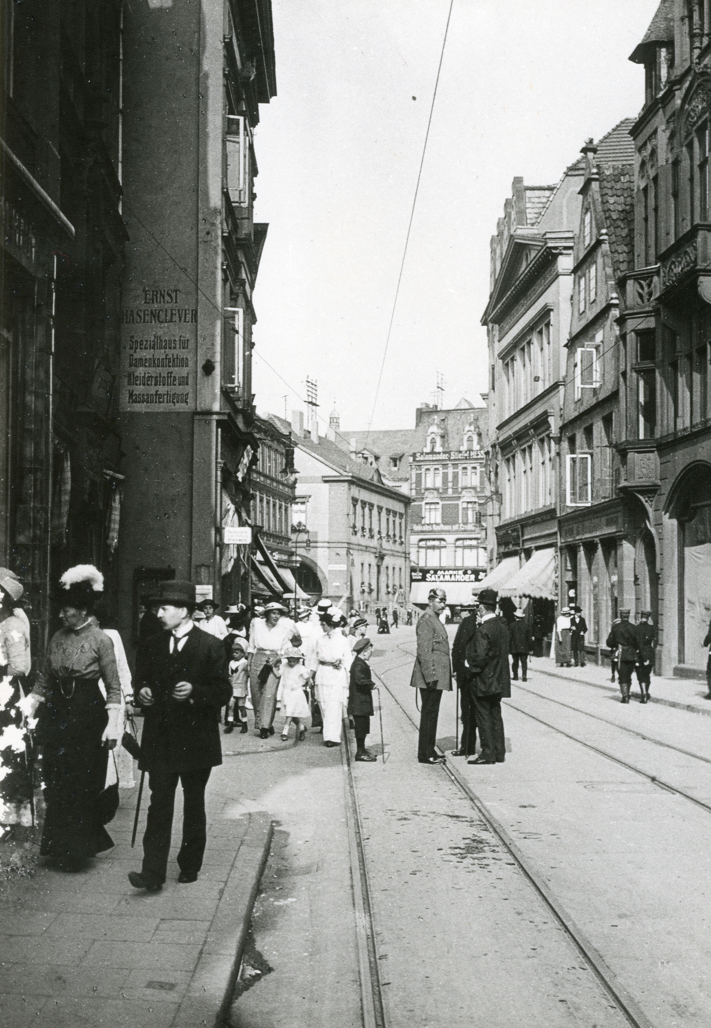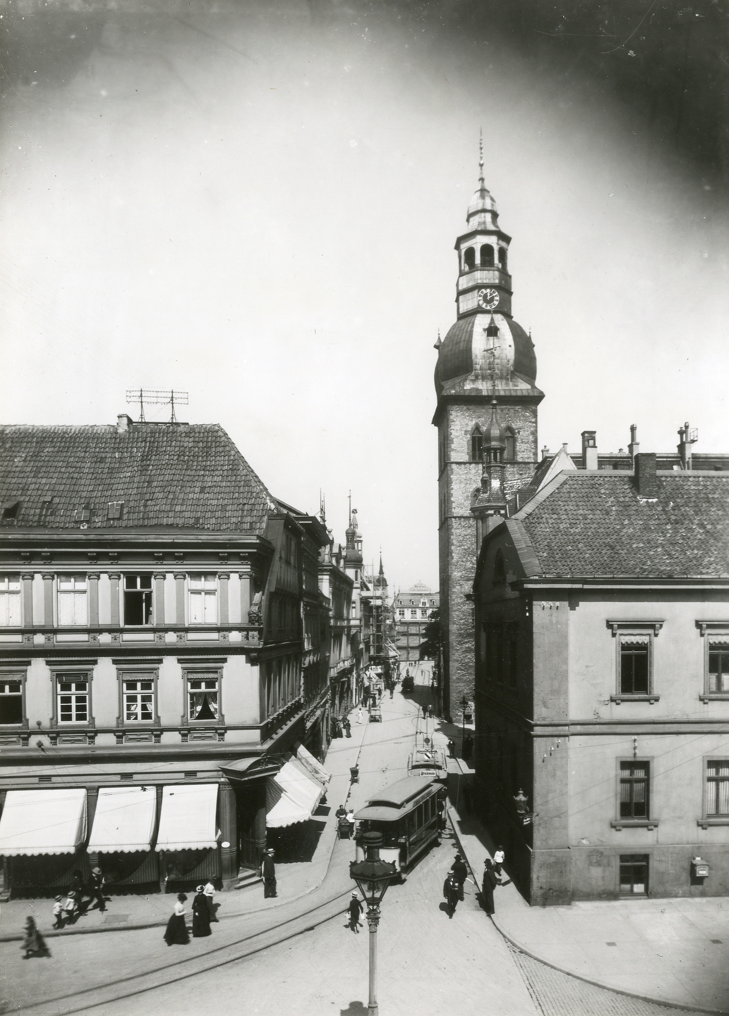 Dass Bielefeld überhaupt eine Straßenbahn bekommen sollte, wurde bereits 1895 beschlossen, als sich die Stadt für den Bau eines Elektrizitätswerkes aussprach. Die Planungen nahmen aber erst 1898 konkrete Züge an, als Carl Brüggemann, ein Diplomingenieur und ausgewiesener Experte, zum Leiter des Elektrizitätswerkes und der projektierten Straßenbahn berufen wurde. Bei der Planung der Linienführung spielte das pulsierende Leben in der Bielefelder Altstadt nur eine untergeordnete Rolle. Die Straßenbahn sollte vielmehr Arbeiterinnen und Arbeiter aus dem südlich gelegenen Brackwede in die Stadt bringen, wo sich rund um den Bahnhof und in einem nord-östlichen Gürtel um die Altstadt die großen Textil- und metallverarbeitenden Fabriken befanden. Und da bot es sich an, den Berufsverkehr mit den Wünschen des Einzelhandels zu verknüpfen und die Schienen von der alten Gütersloher Straße her kommend durch die Obern- und Niedernstraße zum Jahnplatz zu verlegen. Von dort aus fuhr sie durch die Bahnhofstraße weiter zum Bahnhof.