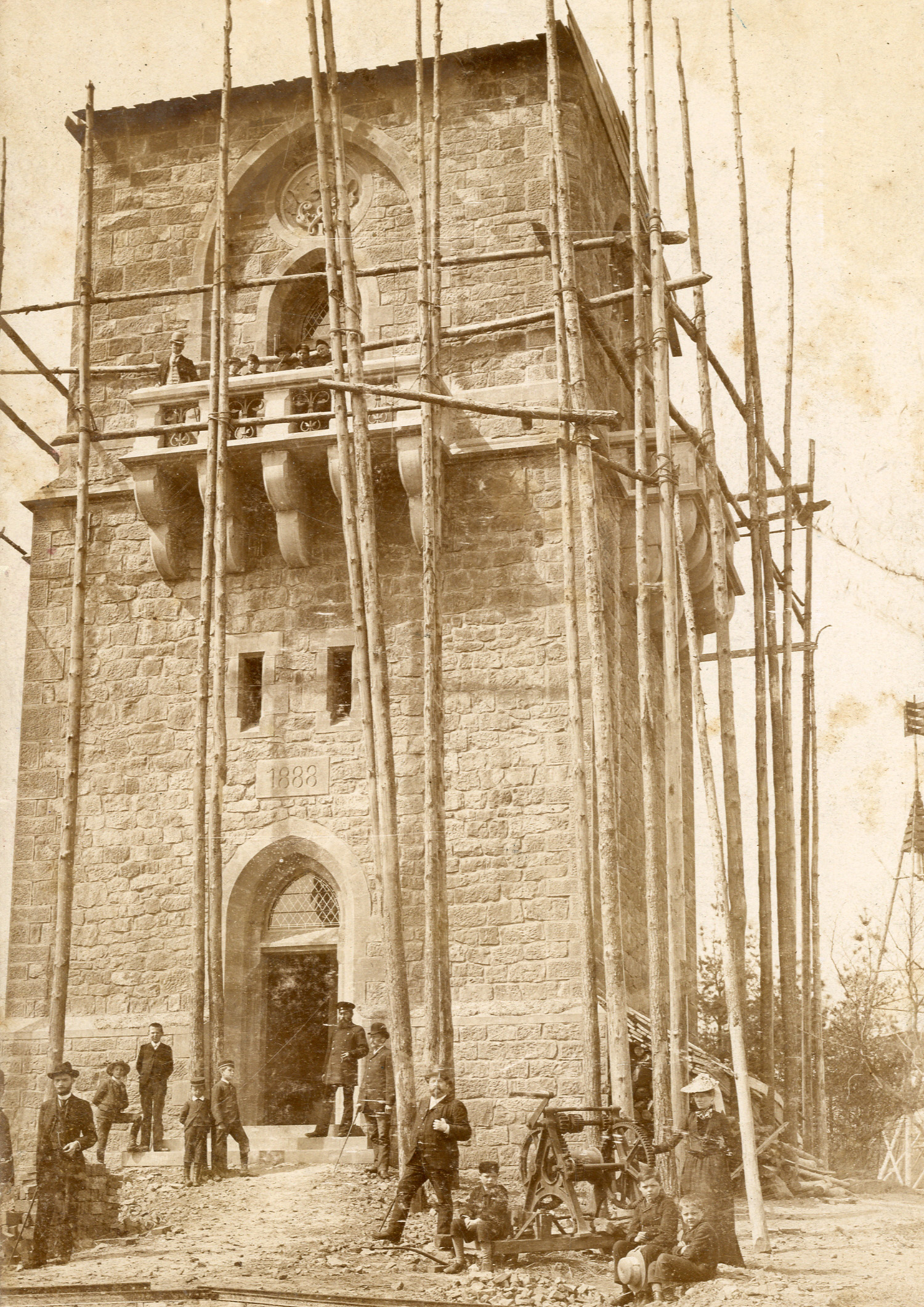 Der 29. Juli 1894 war ein Sonntag. Obwohl es sehr warm war, hatten sich bis zu zehntausend Menschen aus „allen Schichten der Bevölkerung” an der Hünenburg eingefunden, um ein „patriotisches Bauwerk” einzuweihen: den Dreikaiserturm. Die Stadt war mit Flaggen geschmückt, und während sich in der Mittagszeit rund 120 Ehrengäste im Jägerkrug in Uerentrup zu einem Festmahl versammelten und Toasts auf den Kaiser aussprachen, fanden sich auf dem Kesselbrink die Mitglieder von gut 70 Bielefelder und auswärtigen Vereinen ein. Über die Dornberger Chaussee zog ein kilometerlanger Zug singend zur Hünenburg, begleitet von Passanten und Anwohnern, die ihnen Blumensträuße zuwarfen und Getränke und Esswaren verkauften. An der Hünenburg angekommen, hielt Landrat Franz von Ditfurth (1840-1909) die „Weiherede” und las ein Telegramm Kaiser Wilhelms II. vor, der sich für die „patriotische Gesinnung” bedankte, die mit dem Bau des Turms zum Ausdruck kam.