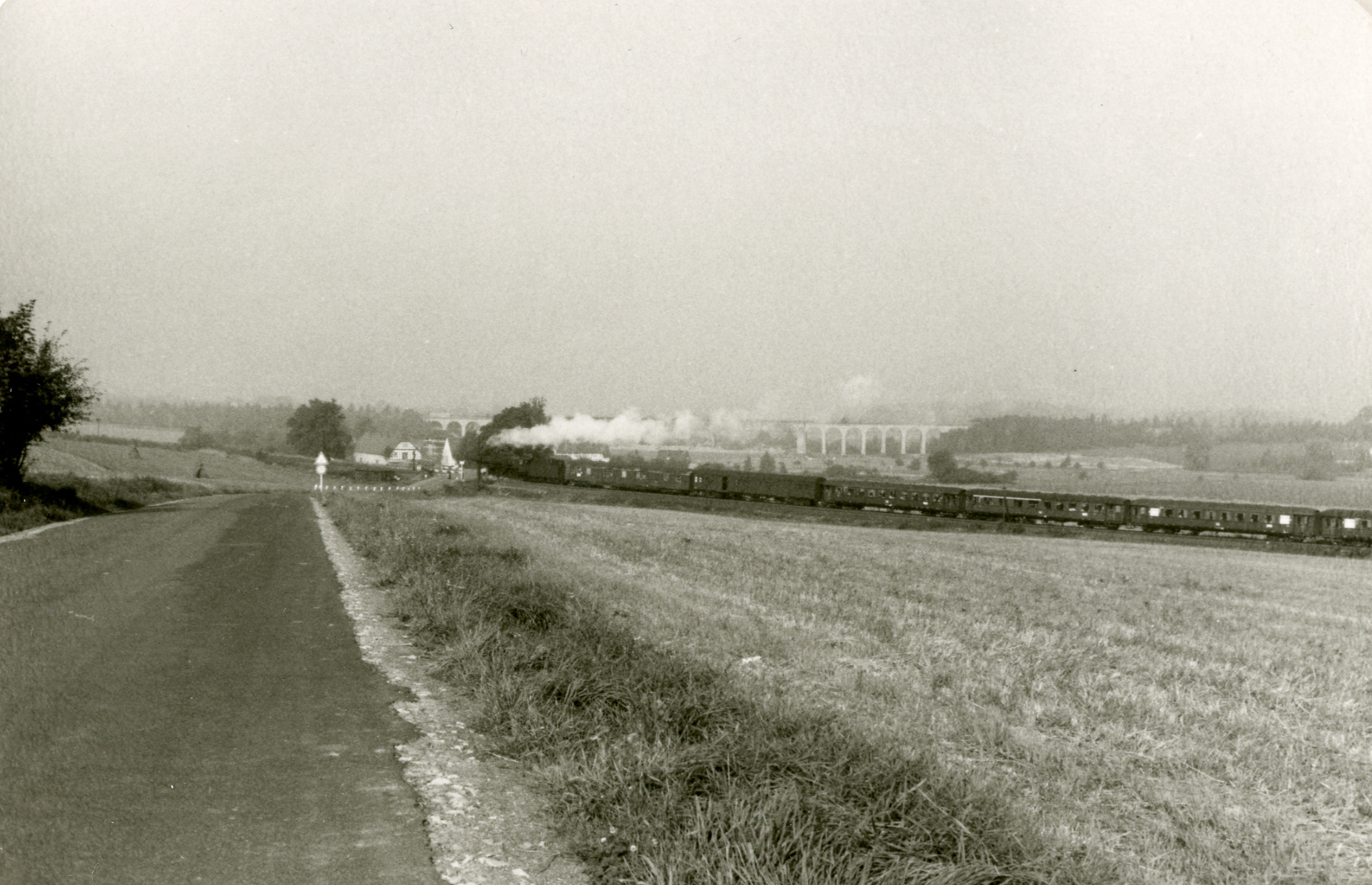 Die Umgehungsbahn führte von der Besitzung Meyer zu Eissen durch das Johannisbachtal zum Stellwerk Brake, ca. 1955; Stadtarchiv Bielefeld, Bestand 108,8/Tiefbauamt, Nr. 105