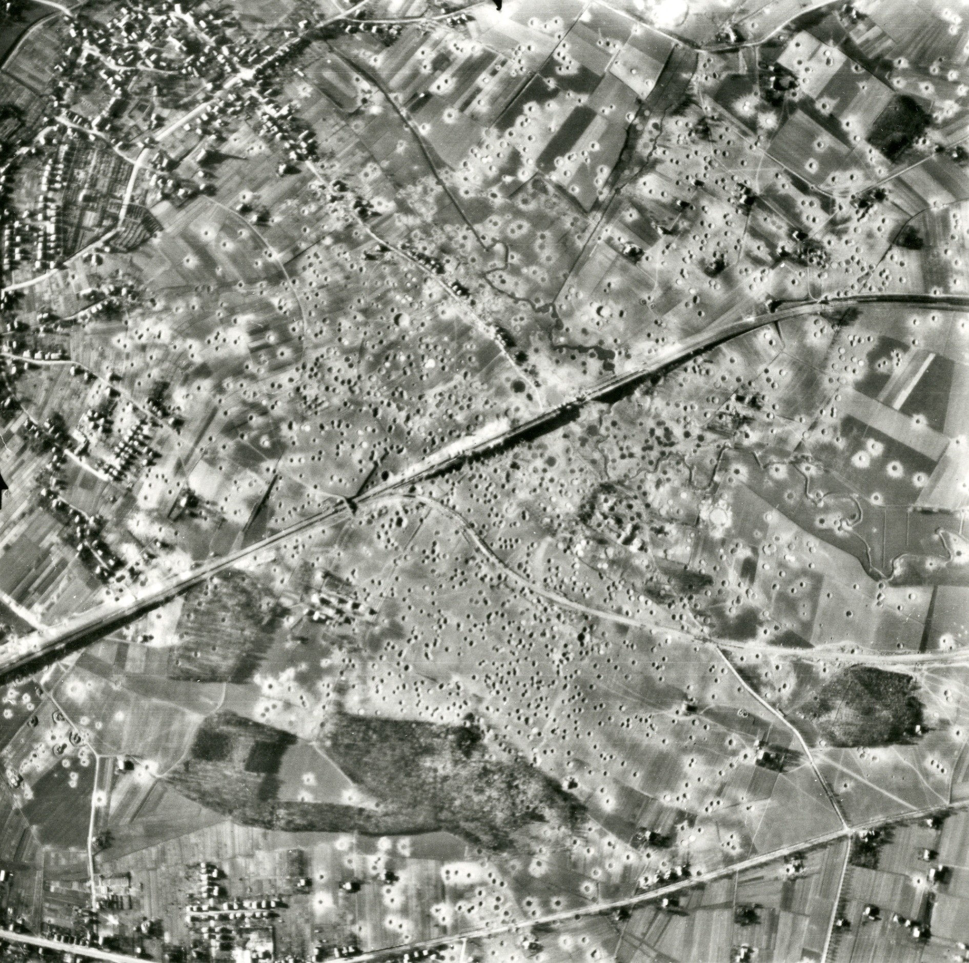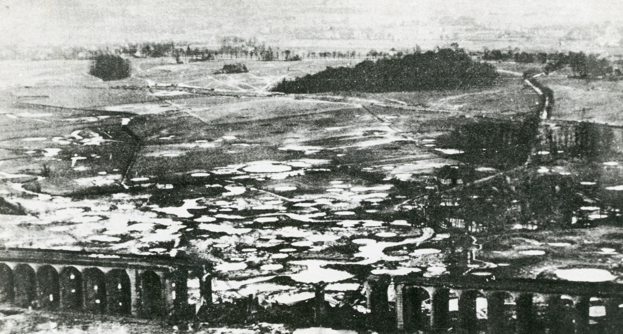 Luftaufnahme der Royal Air Force über den zerstörten Viadukt, 1945; Stadtarchiv Bielefeld, Bestand 400,3/Fotosammlung, Nr. 11-1995-41