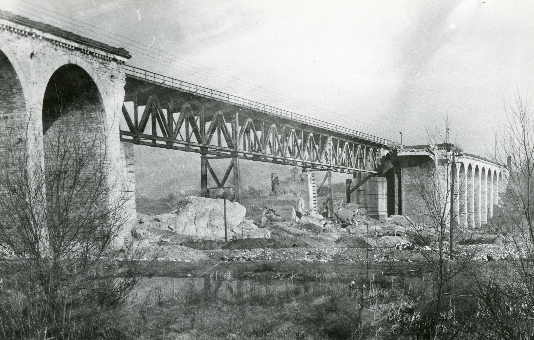 Dieses Foto vom zerstörten Viadukt tauchte in vielen Medien auf, 1945; Stadtarchiv Bielefeld, Bestand 400,3/Fotosammlung, Nr. 11-1995-39