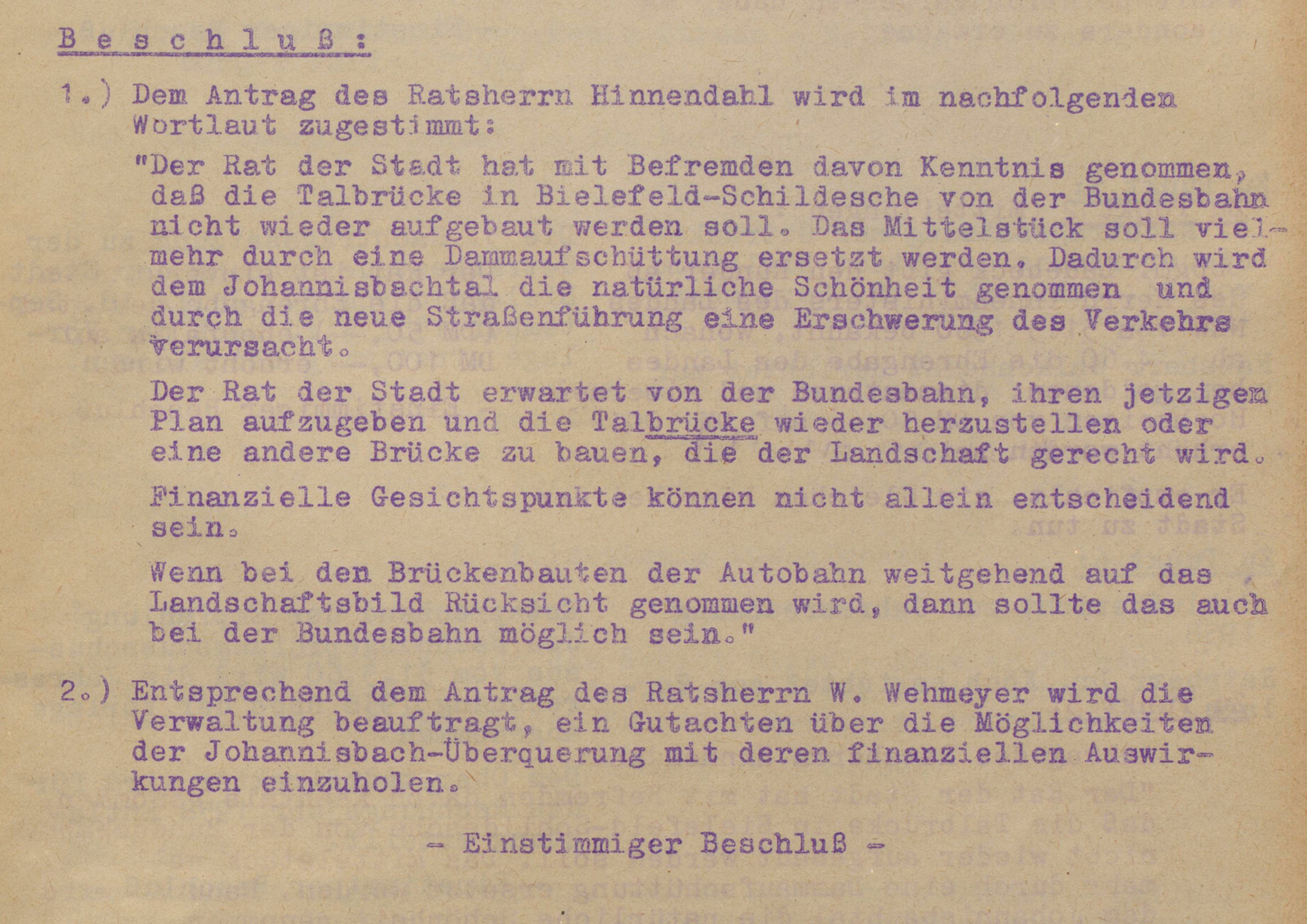 Noch einmal bündelte die Stadt Bielefeld ihre Kräfte um den Dammbau zu verhindern, 4.5.1960; Stadtarchiv Bielefeld, Bestand 140/Protokolle, Nr. 200 e