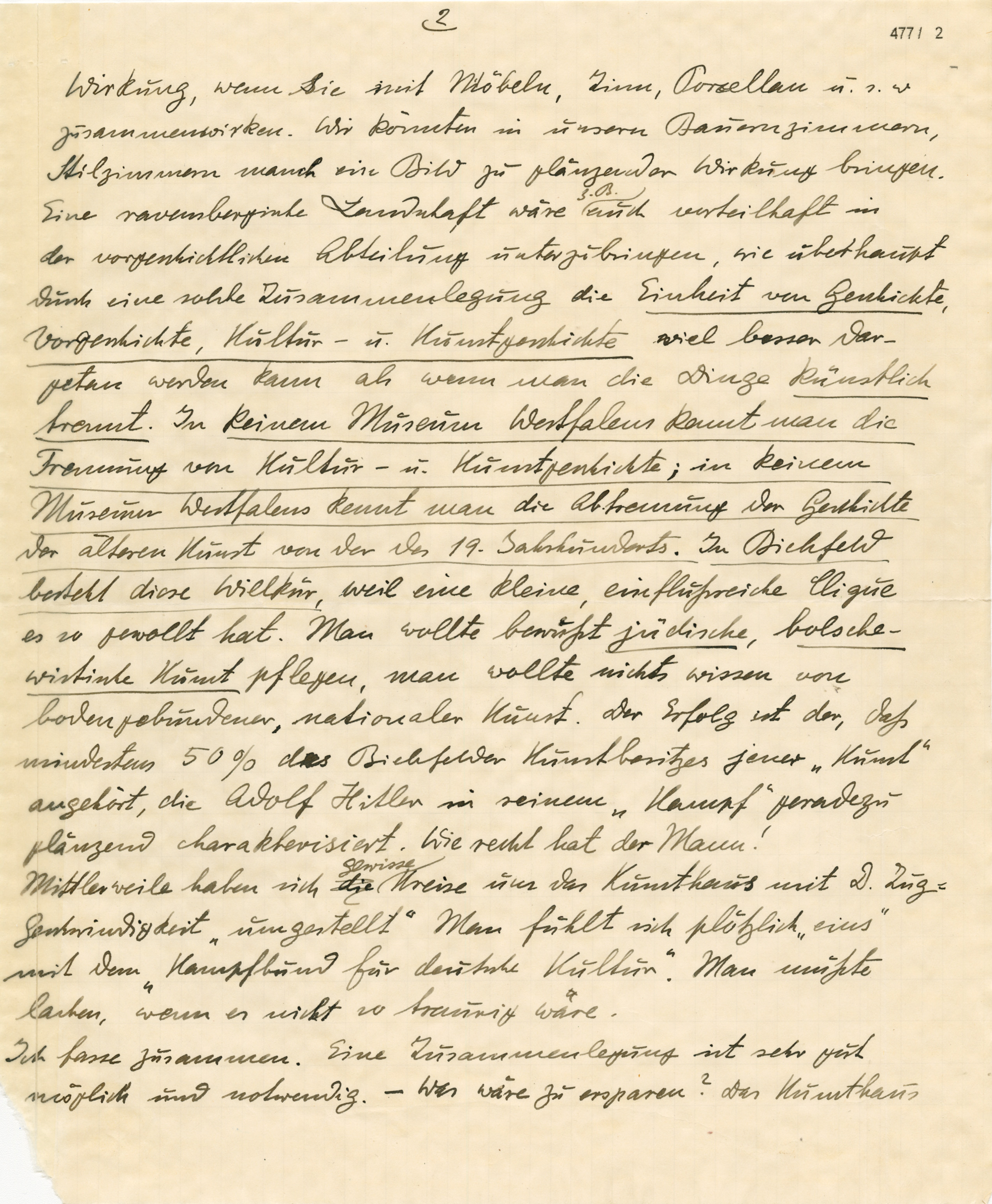 - Stadtarchiv Bielefeld, Bestand 103,2/Hauptamt, Nr. 477: Museumsdirektor Dr. Schoneweg an Bürgermeister Budde wegen Zusammenlegung von Kunsthaus und Museum, 1933