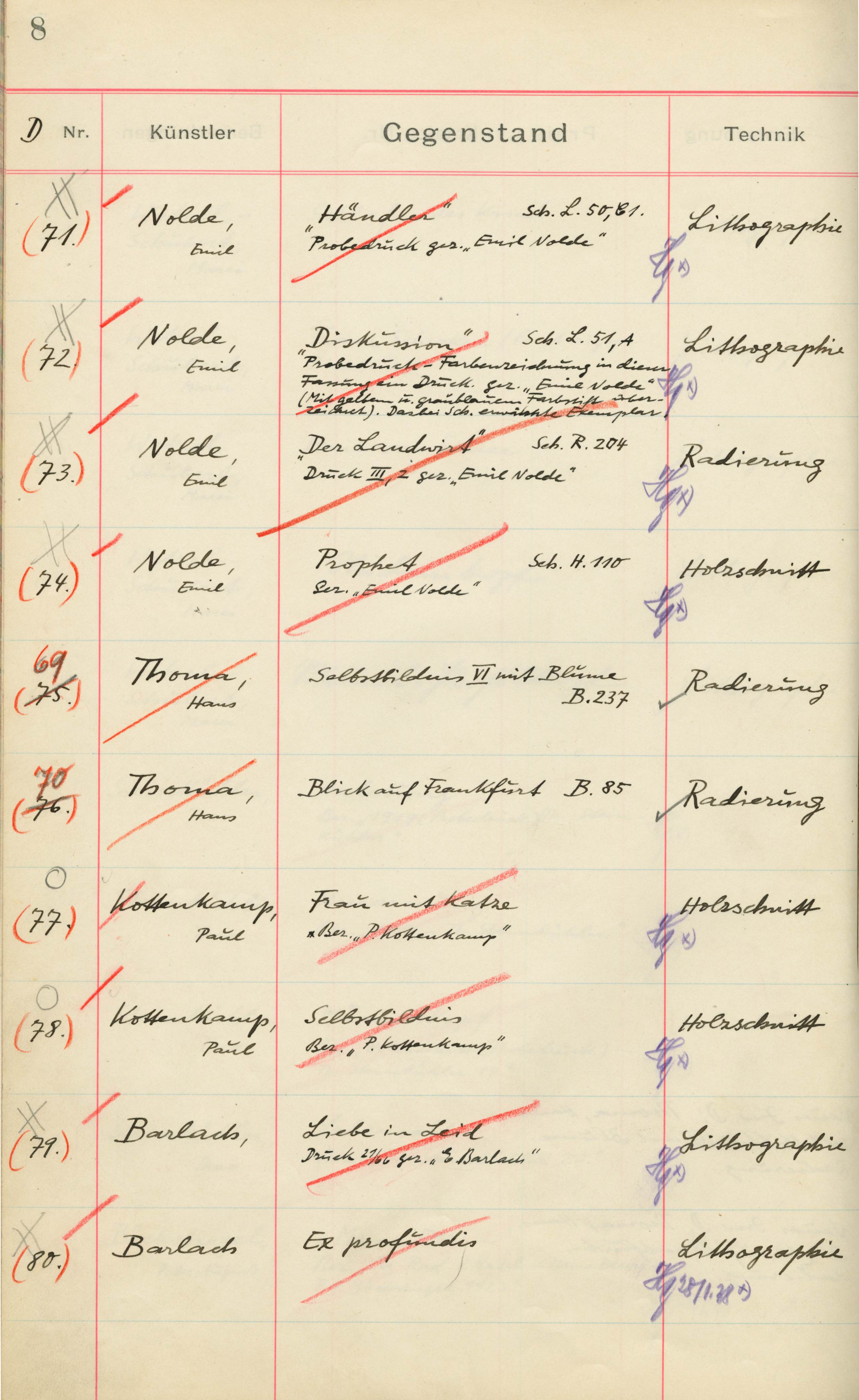 Der Arbeit von Becker wurde 1933 ein vorläufiges Ende gesetzt. Nach der „Machtergreifung“ der Nationalsozialisten galt die moderne Kunst bald als „entartet“ und auch in Bielefeld wird Stimmung gegen die „undeutsche“ Kunst gemacht. Da es gerade diese Kunst war, der Becker sich verschrieben hatte, zwangen ihn die „braunen Kunstignoranten“, wie sie 1965 in der Zeitung genannt werden, seine Stelle als Leiter des Kunsthauses abzugeben. Ganz im Sinne der nationalsozialistischen Ideologie kritisierte Dr. Eduard Schoneweg (1886-1969), zu dieser Zeit Direktor des Städtischen Museums, die Arbeit von Becker. An Bürgermeister Fritz Budde (1895-1956) schrieb er: „Man wollte bewusst jüdische, bolschewistische Kunst pflegen, man wollte nichts wissen von bodengebundener, nationaler Kunst. Der Erfolg ist der, daß mindestens 50% des Bielefelder Kunstbesitzes jener ‚Kunst‘ angehört, die Adolf Hitler in seinem ‚Kampf‘ geradezu glänzend charakterisiert. Wie recht hat der Mann!“ Ebenso machte auch Kreiskulturwart Karl Wilke seinem Unmut Luft und forderte die Entlassung von Becker. Dass die beiden Parteimitglieder der NSDAP Becker in dieser Form angriffen, mag nicht verwundern. Doch als die Schließung des Kunsthauses zur Debatte stand, wendeten sich auch manche gegen Becker, die vorher noch ohne Probleme mit ihm zusammen gearbeitet hatten. Herman Freudenau (1881-1966), Vorsitzender der Ortsgruppe Bielefelds des Reichsverbandes bildender Künstler Deutschlands, fiel Becker in einem offenen Brief in der Westfälischen Zeitung am 22. Mai 1933 in den Rücken: „ist es besonders notwendig, sie [die Kunst] recht pfleglich zu behandeln. Die Art und Weise in der das bisher geschehen ist, hatte nur sehr bedingt unsere Billigung.“ In der Vergangenheit hatte Freudenau mehrfach im Kunsthaus seine Werke ausgestellt, hielt es unter den gegebenen Umständen aber wohl für klüger, sich von Becker zu distanzieren. Zuspruch erfuhr Becker von Käthe Kollwitz, die bald ebenfalls verfemt wurde. Ende August 1933 schrieb sie an Becker: „Also Ihre Arbeit am Städt. Kunsthaus in Bielefeld ist beendet. Das bedauere ich sehr, denn ich weiß, wie Sie der Sache dienten und mit welcher Liebe Sie sich ihr hingaben. Es ist ein Verlust. Aber diese Zeit muß erst mal vorübergezogen sein und wann wird das sein?“