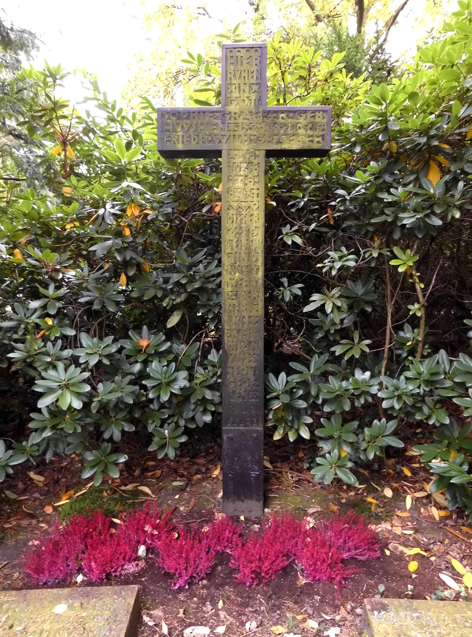 Im Mai 1912 schlossen Phia Graeber und Karl Muggly den Bund für’s Leben. Künftig war auch ihr Ehemann ihr Lehrer. Künstlerisch gekrönt wurde das Jahr, als Muggly den zweiten Preis des Plakatwettbewerbs für die internationale Ausstellung für Buchgewerbe und Graphik in Leipzig gewann, der mit 1000 Reichsmark dotiert war. Friedrich Schultz (1876-1945), Bielefelder Stadtbaurat, vermittelte ihm einen lukrativen Auftrag auf dem 1912 eröffneten Sennefriedhof. Die Kapelle sollten 16 Kuppelfenster erhalten. Muggly hatte nur ein Jahr Zeit bis zur Fertigstellung, denn am 17.Juni 1913 fand die feierliche Eröffnung statt. Ob tatsächlich alle Fenster von ihm gestaltet wurden oder auch seine Schüler involviert waren, ist auch heute noch nicht abschließend geklärt. Sein zunehmender Bekanntheitsgrad brachte ihm auch private Aufträge.