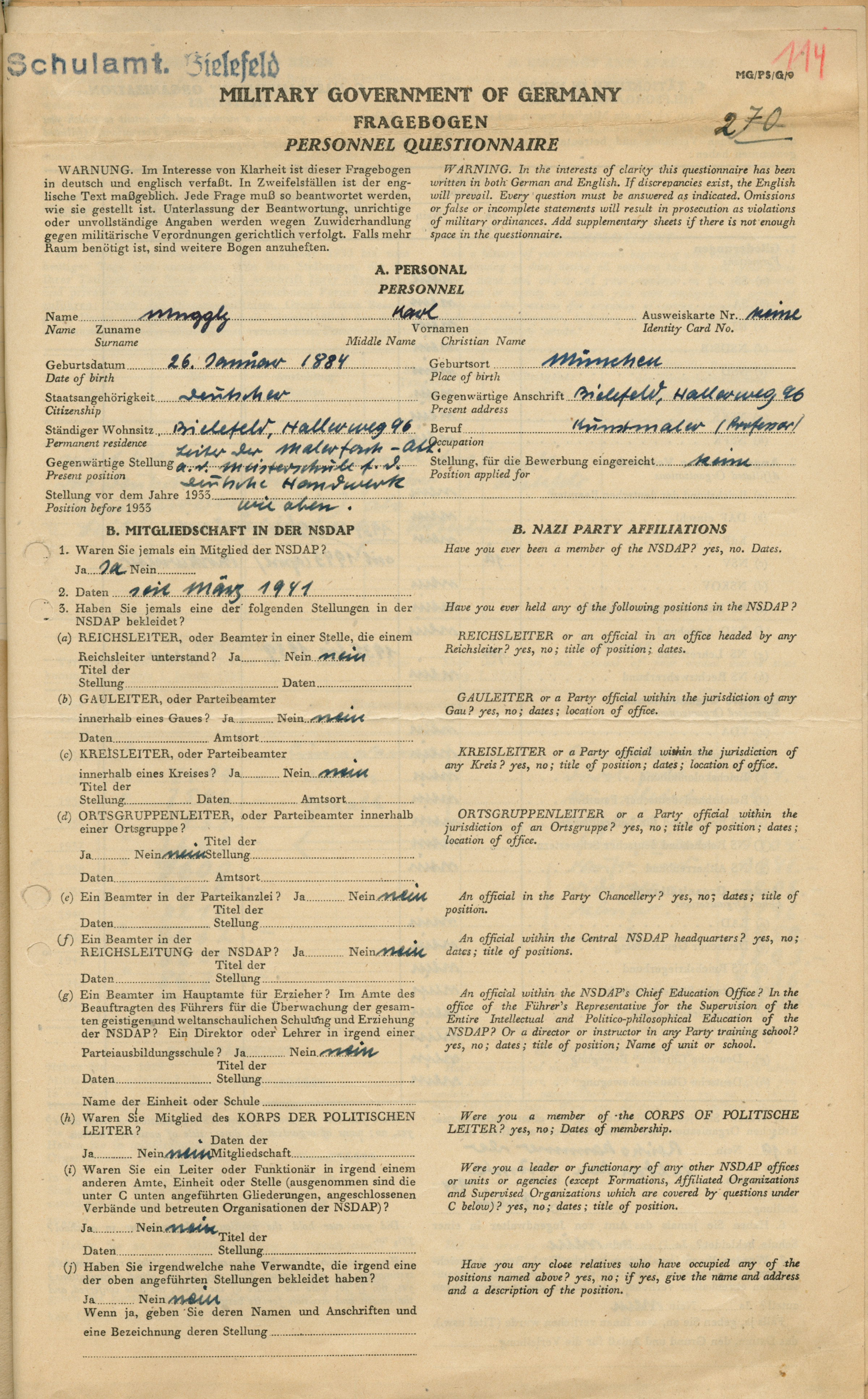 - Stadtarchiv Bielefeld, Bestand 103,4/Personalakten, Nr. A 890