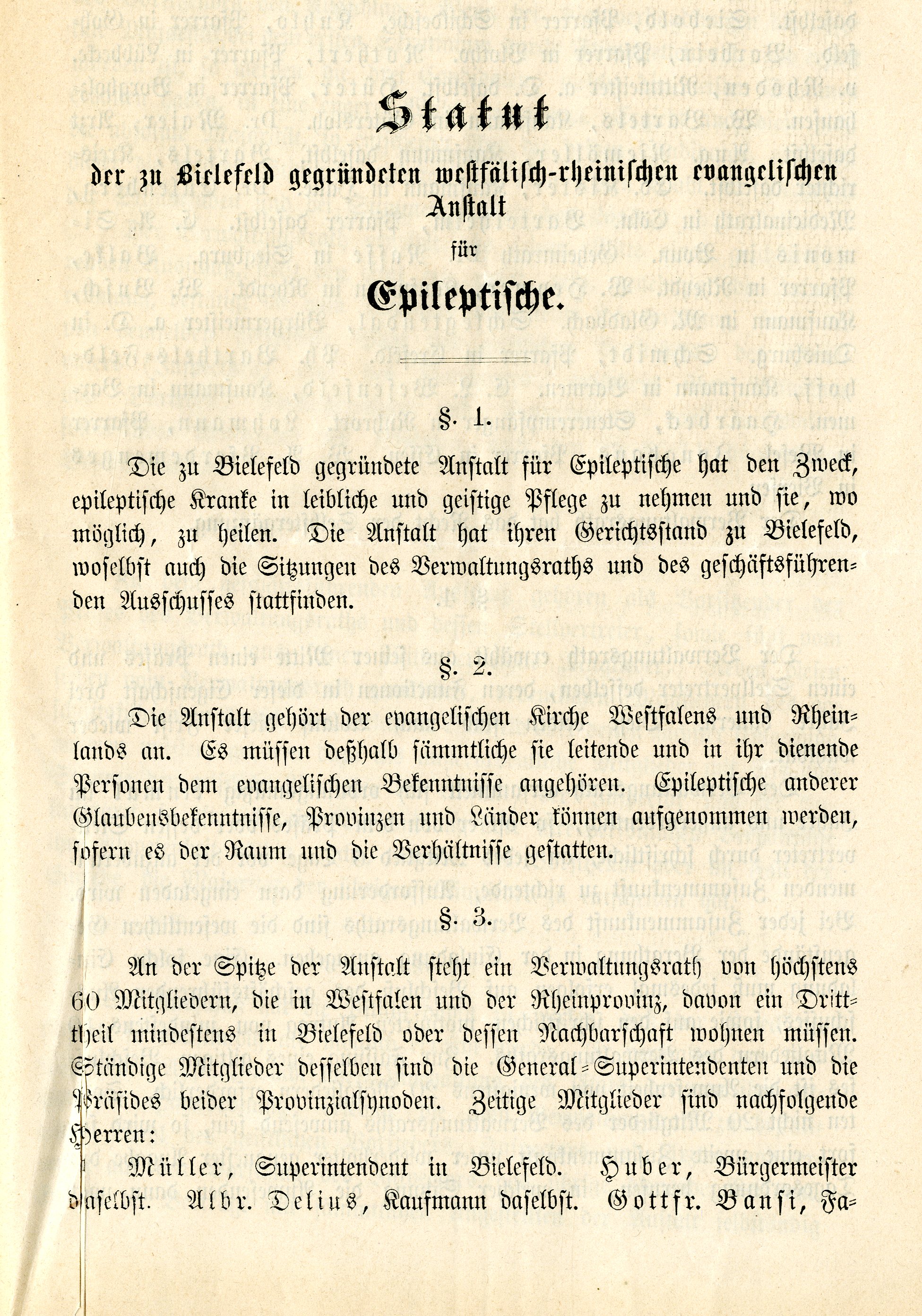 Etwas kryptisch wusste „Der Wächter“ am 2. Mai 1866 zu berichten, dass die „Anstrengungen der pietistisch-conservativen Partei, namentlich der dieser Richtung angehörigen Prediger, durch Gründung sogenannter Rettungsanstalten hier festen Fuß zu fassen, scheinen mit Erfolg gekrönt zu werden; man zweifelt nicht mehr an dem Zustandekommen eines hier einzurichten Diakonisseninstituts nebst Heilanstalt für Epileptische“. Am 16. Mai 1866 folgte im Conservativen Volksfreund der öffentliche Unterstützungsaufruf des Komitees zur Gründung einer „Heil- und Pflege-Anstalt für Epileptische bei Bielefeld“, der an gelungene Vorbilder erinnerte und christliche Milde appellierte in einer Zeit, die vom „Kampf des Glaubens mit dem Unglauben auf wissenschaftlichem Gebiete“ geprägt sei, wobei auch den Unterzeichnern klar gewesen sein dürfte, dass Heilung und Pflege allein mit christlichem Glauben nicht zu erreichen war.