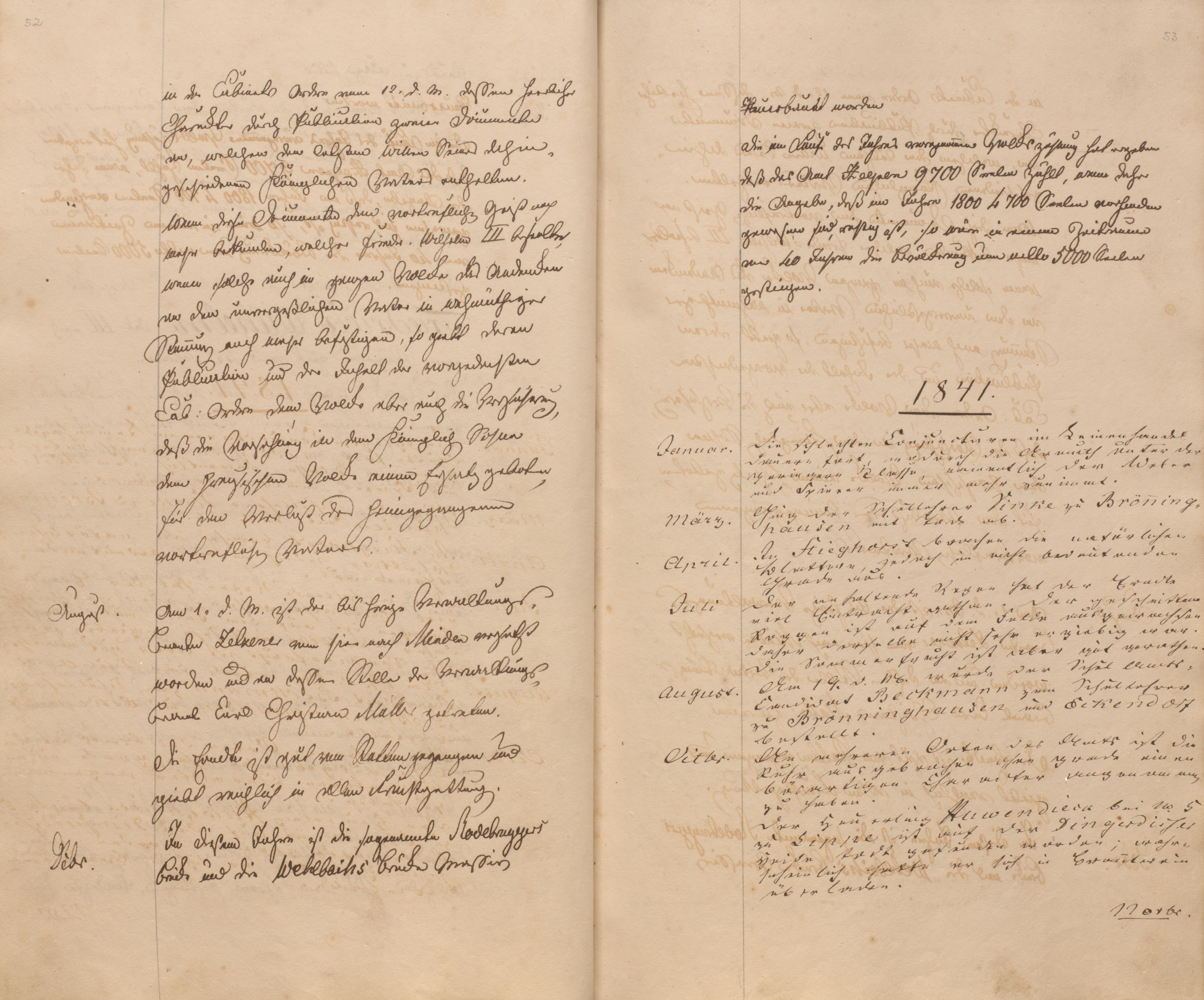 Mit Pathos hatte die Regierung zur Führung der Amtschroniken aufgerufen, nachdem die als Joch empfundene napoleonische Fremdherrschaft abgeschüttelt worden war und gerade die „Befreiungskriege“ einer Darstellung bedurften: „Ein edles und aufgeklärtes Volk wird stets darauf halten, daß es den ihm zukommenden Platz in der Geschichte behaupte, es wird deshalb die Schicksale der lebenden Generation nicht unter dem Gesichtspunkte einer vorüber eilenden Erscheinung, sondern unter dem eines bleibenden Zusammenhangs mit allen Geschlechtern künftiger Jahrhunderte betrachten, und diesen Zusammenhang, wahrhaft wie er der That nach ist, auch äußerlich in Wort und Schrift zu begründen sich angelegen seyn lassen.“ Trotz dieses inbrünstigen Appells nahmen die Beamten in Schildesche, Heepen und auch in Jöllenbeck, das damals zum Kreis Herford gehörte, die Anordnung recht ungerührt zur Kenntnis. Keiner lieferte die allgemeine Einleitung mit Statistik, wie gefordert, bis Ende Februar 1818. Erst einige Jahre und regelmäßige Mahnungen später sollten die Verwaltungschefs ihre Beobachtungen und Erfahrungen jährlich niederschreiben. Die entstandenen Chroniken sind dann allerdings ein Kaleidoskop der jeweiligen Amtsgeschichte mit Namen von Amtsträgern, Berichten zu den großen politischen Ereignissen und deren lokalen Auswirkungen, zu Unglücksfällen, Wetterereignissen, Ernteverhältnissen und Lebensmittelpreisen – freilich alles gefiltert durch die Meinung des Behördenleiters, der über Wichtigkeit und Unwichtigkeit entschied, während Tendenz und Kritik grundsätzlich unerwünscht war. „Wahrhaftigkeit, einfache Darstellung, reine Beschränkung auf die Thatsache, ohne alle Einmischung von Privat-Ansichten, und ohne allen nicht zur Sache gehörigen Wortkram, vor allen Dingen von ihnen gefordert werden. Was wirklich geschehen ist, soll die Nachwelt auf diesem Wege erfahren; nicht was dieser oder jener dabey gedacht hat“, war den Chronisten 1817 ins Stammbuch geschrieben worden.