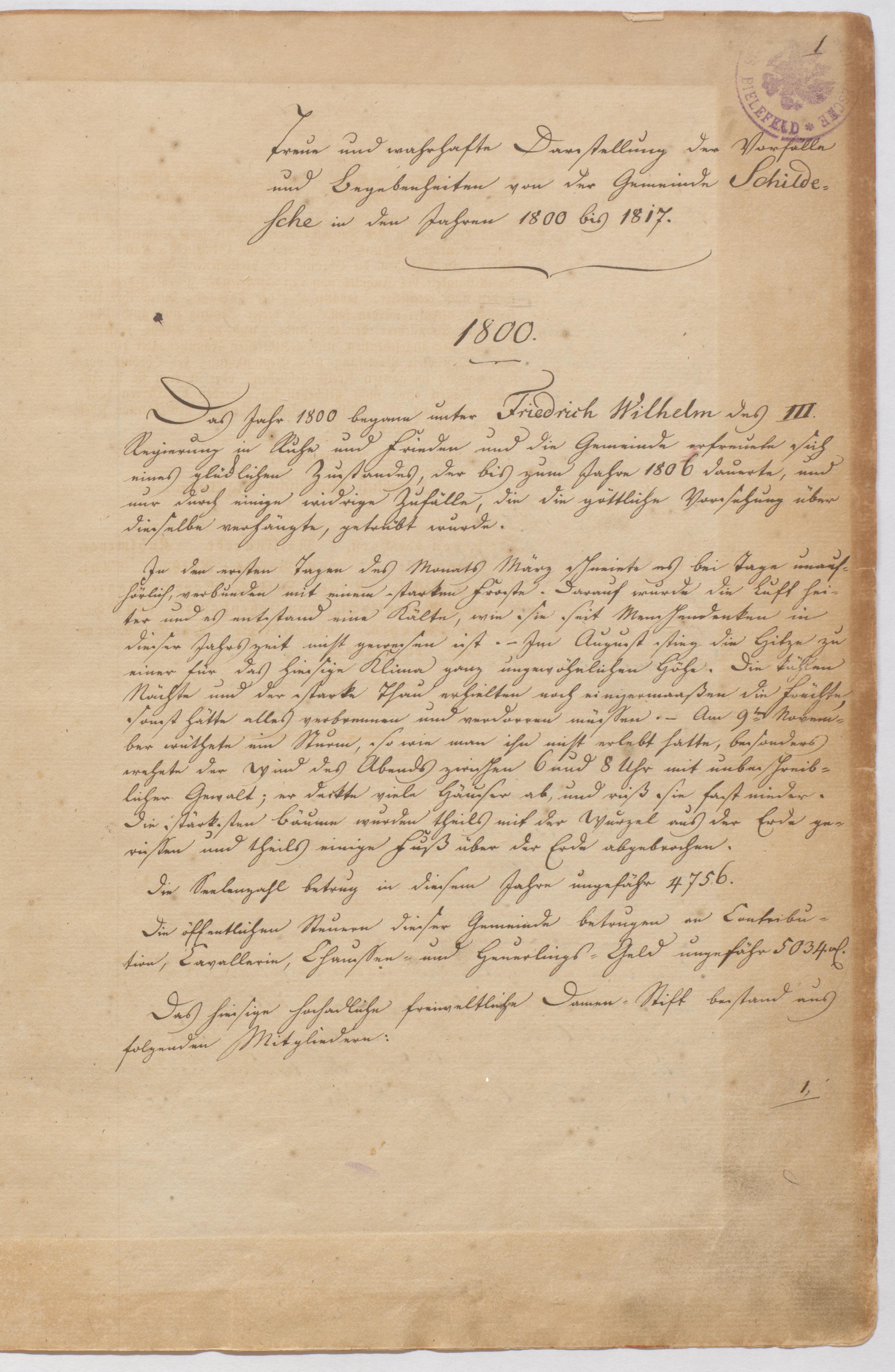 - Bestand 130,6/Amt Schildesche, Nr. 164: Chronik der Gemeinde Schildesche (Entwurf), 1800-1826