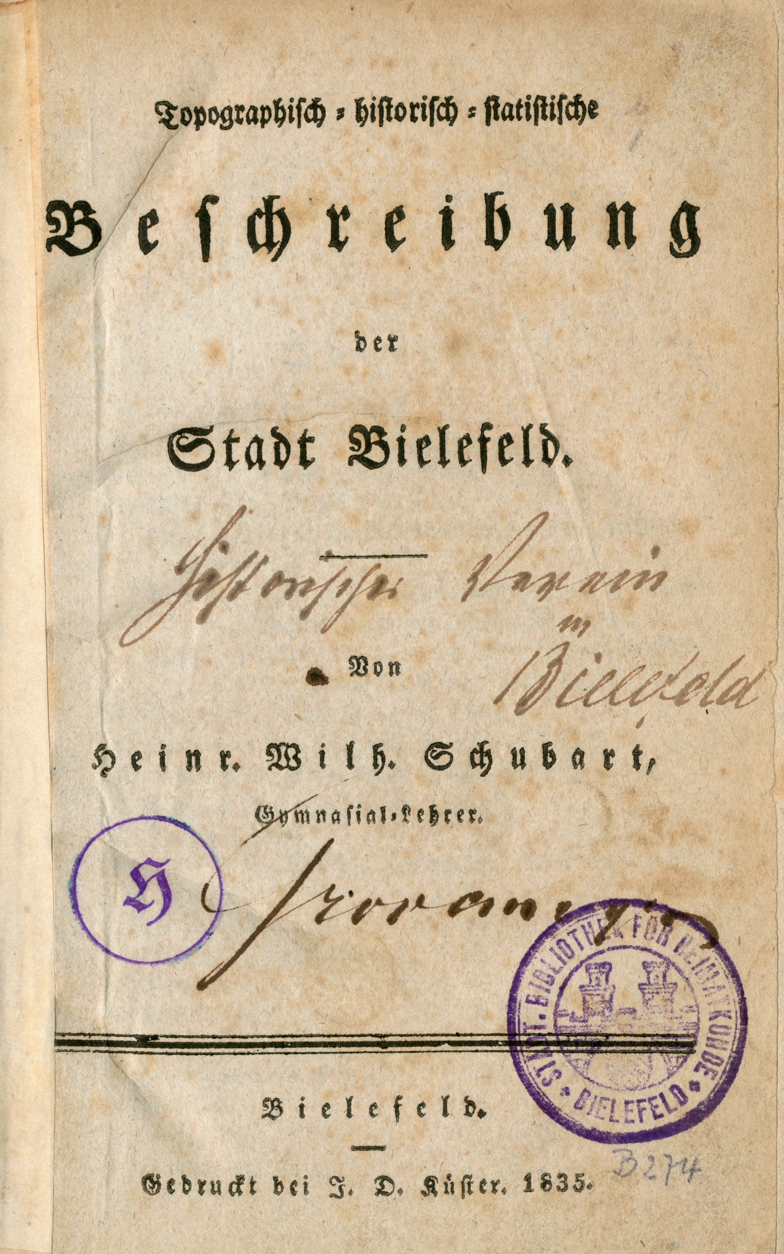 - Schubart, Heinrich Wilhelm, Topographisch-historisch-statistische Beschreibung der Stadt Bielefeld, Bielefeld 1835 (online)