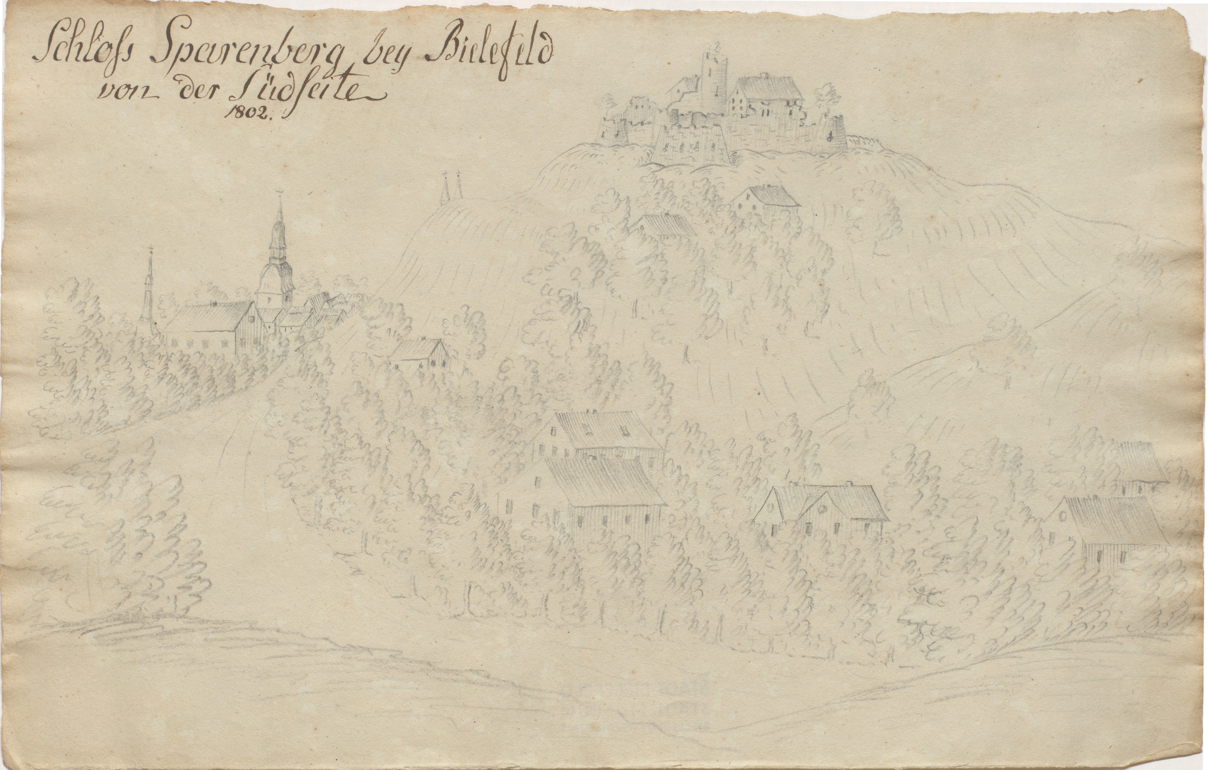 - Stadtarchiv Bielefeld, Bestand 400,11/Graphische Sammlung, Nr. 318: Schloss Sparenberg bey Bielefeld von der Südseite, 1802