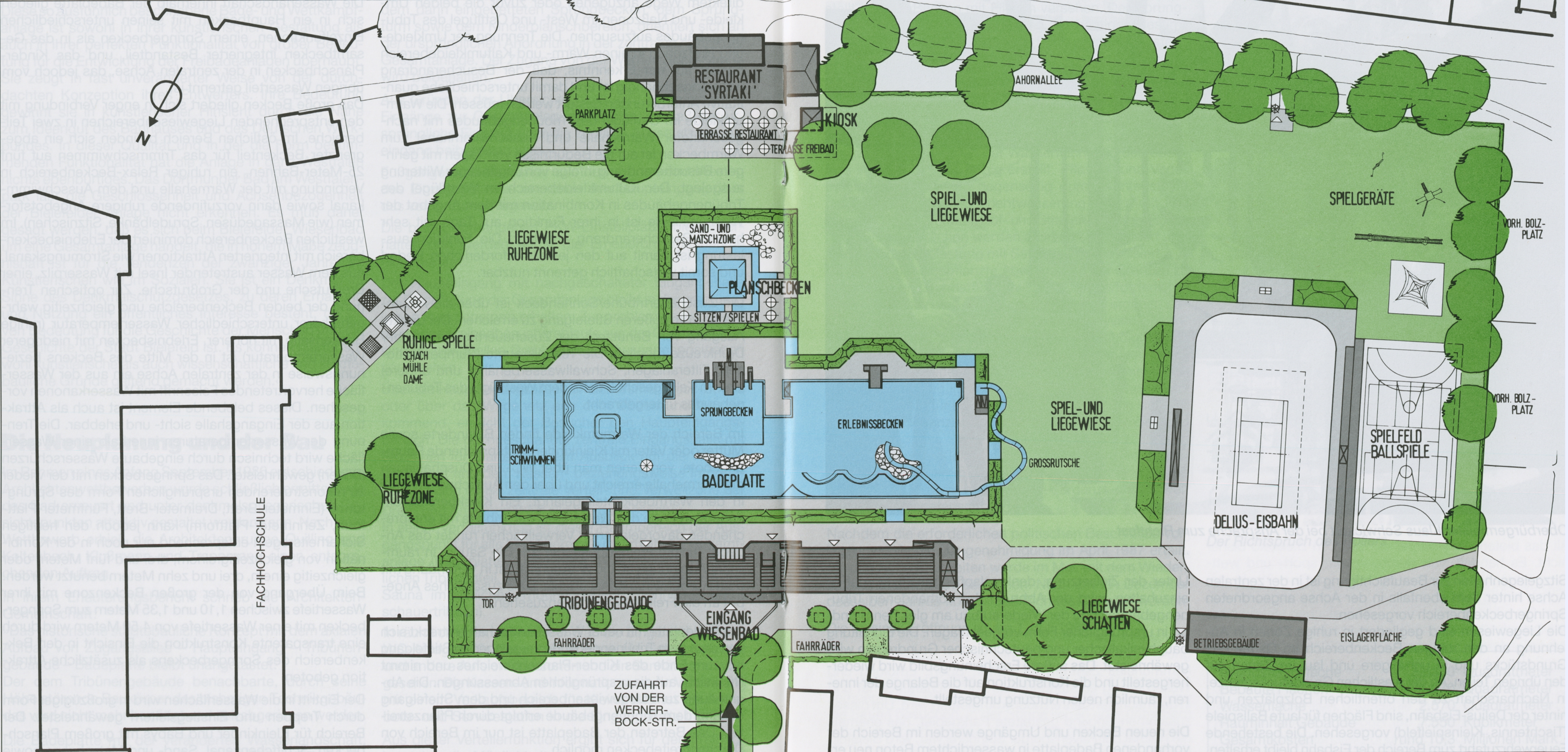 Bielefeld war die wasserreichste Stadt der Bundesrepublik Deutschland. Zumindest an der Bäder-Wasserfläche pro Einwohner gemessen. Eines der Bäder innerhalb der großzügigen Wasserlandschaft Bielefelds — einer Stadt ohne größeren Fluss oder See — war das städtische Innenstadtfreibad: Dieses so genannte „Wiesenbad“ wurde am 1. Juli 1988 zum zweiten Mal der Öffentlichkeit übergeben. Ein buntes Festprogramm sollte nicht nur die Stadtbevölkerung zur Wiedereröffnung des Freibades locken, sondern vermutlich auch die negativen Stimmen und das harte Ringen um das Für und Wider des Bades verdrängen.
