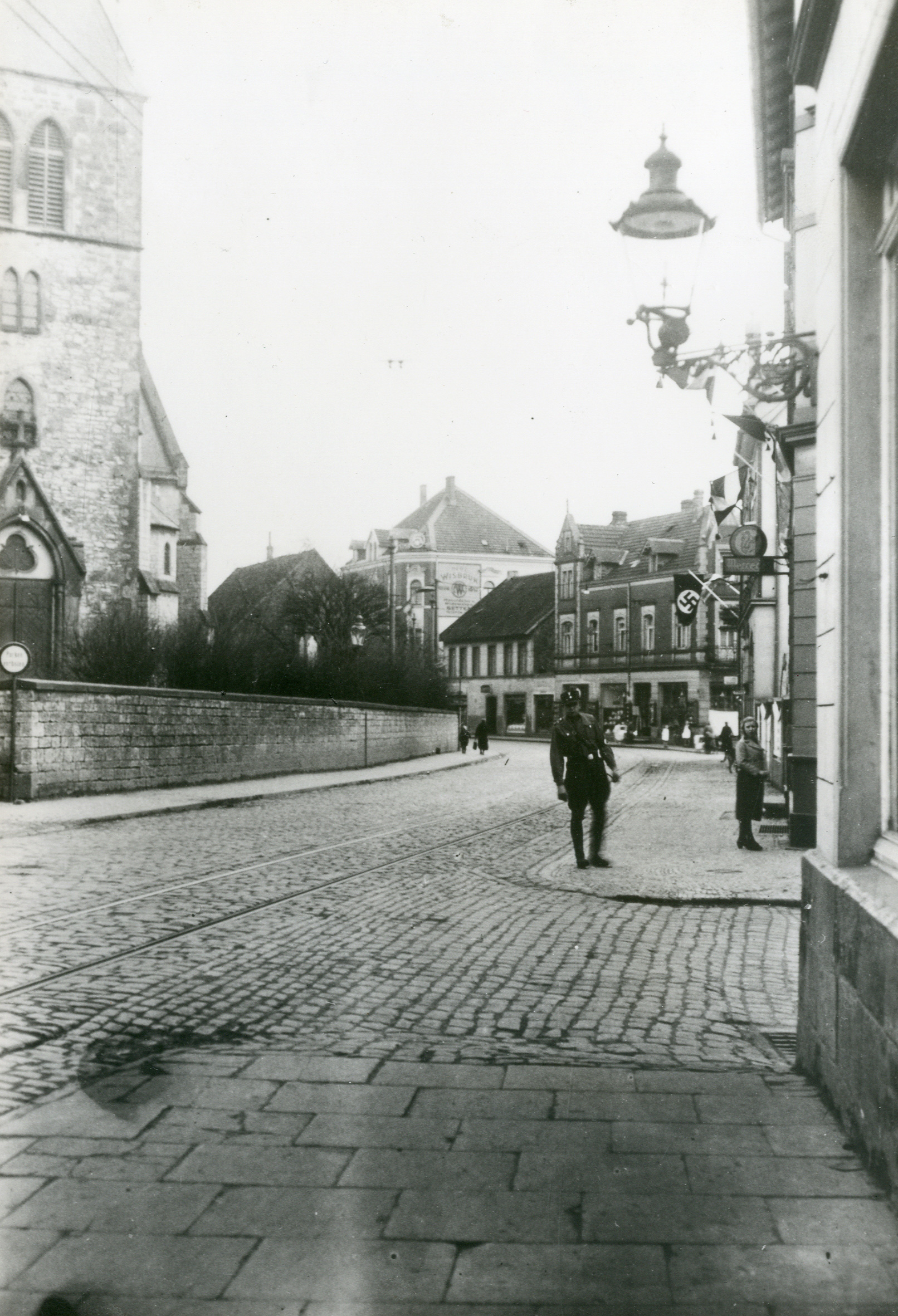 Als Bürgermeister und hochrangiges Mitglied der lokalen NSDAP trug er aber auch politische Verantwortung für den Terror in seinem Sprengel, unter dem jüdische und in Opposition zum Regime stehende Menschen seit 1933 litten. Juden wurden mit Beginn der nationalsozialistischen Diktatur auch in Brackwede ausgegrenzt, diffamiert und verfolgt, sie waren dem Terror und den Verhaftungen infolge des Pogroms in der Nacht vom 9. auf den 10. November ausgesetzt und sie wurden, wenn sie nicht vorher geflohen waren, seit dem 13. Dezember 1941 in Ghettos und Vernichtungslager deportiert. Auch in Brackwede wurden Zwangsarbeiter zumeist aus dem Osten Europas, aber auch aus den Niederlanden, Italien und anderen Ländern eigesetzt. Sie mussten bei den Kammerichwerken arbeiten, bei Arntzen, Ruhrstahl oder der Reichsbahn, sie waren unter extremen Bedingungen in Lagern untergebracht und durften bei Luftangriffen die Bunker nicht betreten.