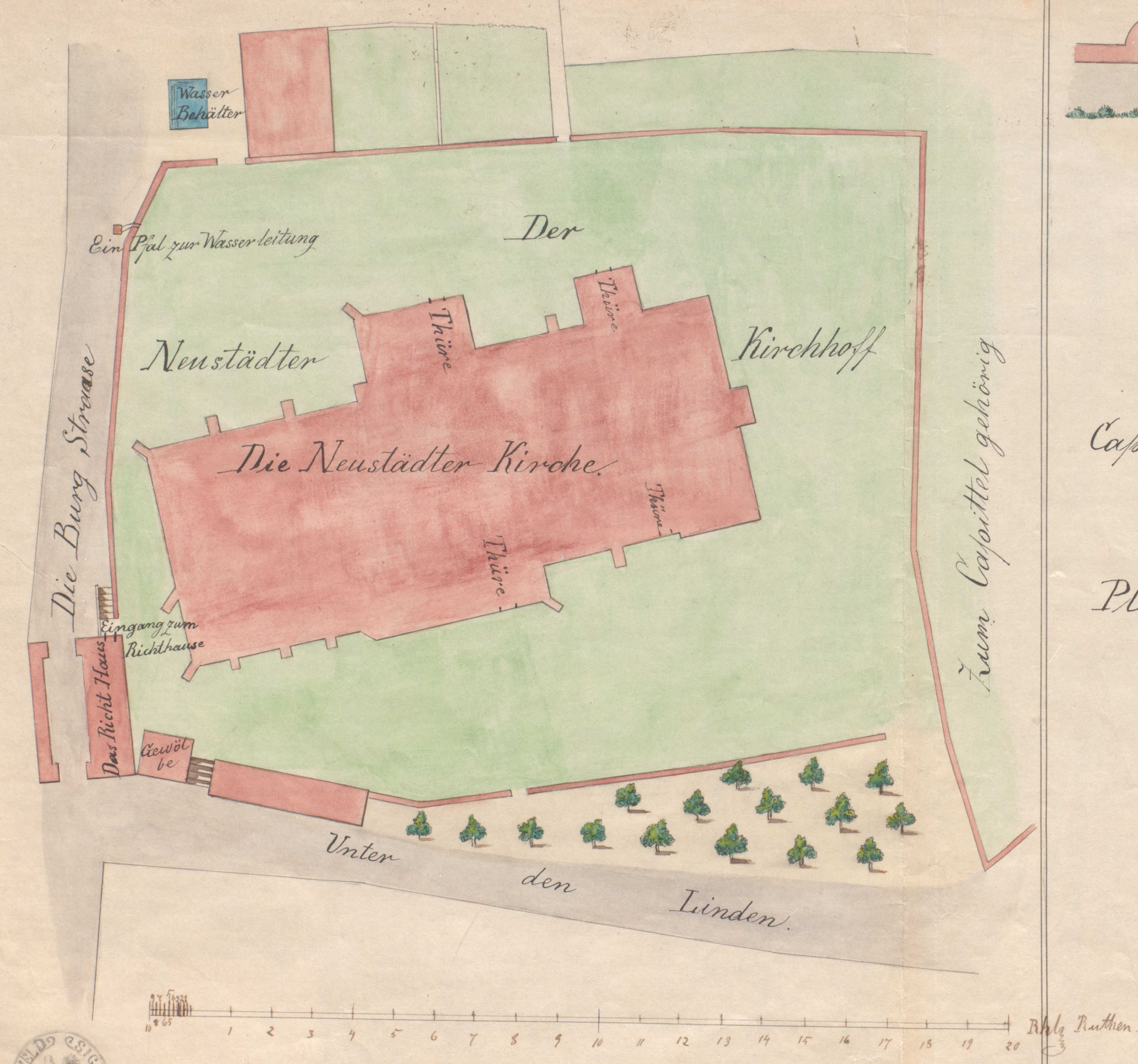 - Stadtarchiv Bielefeld, Bestand 400,8/Karten und Pläne, Nr. 280: Situationsplan Neustädter Kirche und Umgebung, 1790 (Ausschnitt)
