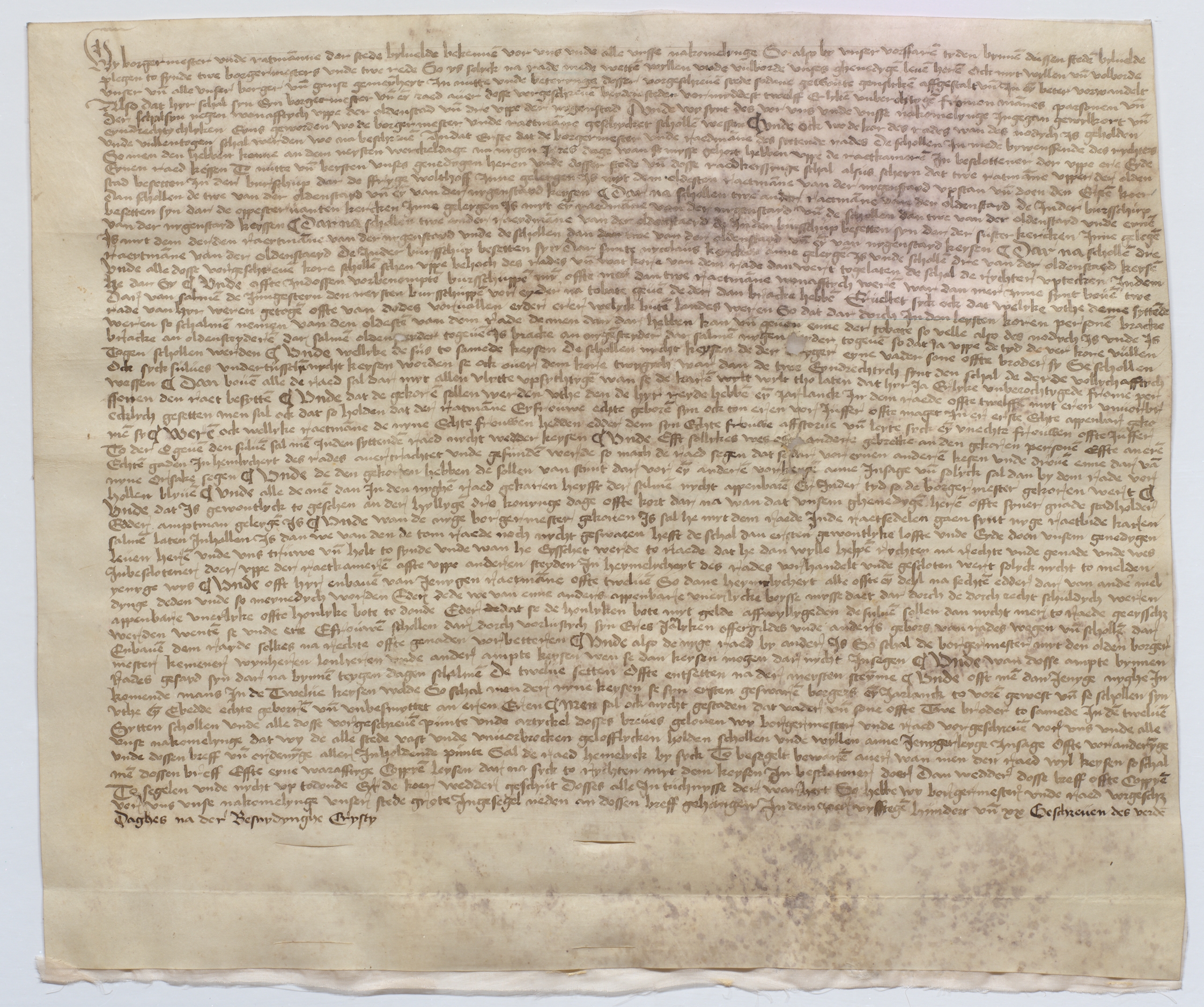 - Stadtarchiv Bielefeld, Bestand 100,1/Urkunden, Nr. 131: Bürgermeister und Räte beider Städte beschließen die Vereinigung der Alt- und Neustadt und bestimmen, dass beide Städte in Zukunft einen Bürgermeister und zwölf Ratsmannen und zwar neun von der Altstadt und drei von der Neustadt wählen sollen […]; 1520 Januar 5