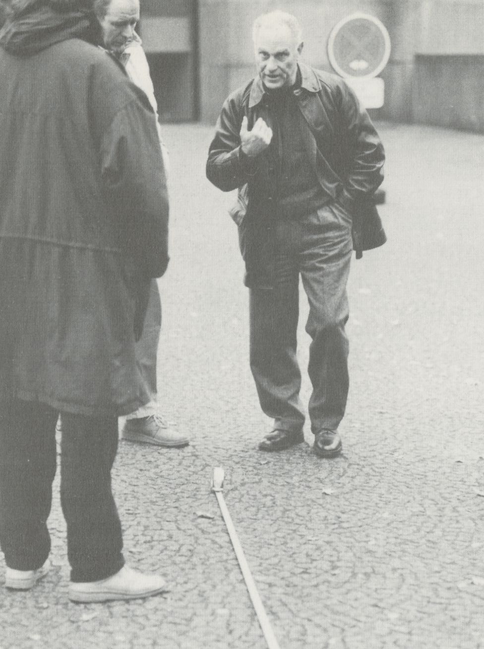 Pünktlich zum Aufbau der dritten und letzten Platte gegen 11 Uhr traf Serra selbst mit seiner Frau Dr. Clara Weyergraf-Serra und seinem Galeristen Alexander von Berswordt von der Galerie „m“ aus Bochum ein. Serra, sogleich umzingelt von Fotografen und Reportern, war zwar zufrieden mit den bisherigen Arbeiten, zugleich jedoch sehr angespannt: Die vielen Zuschauer wollte er lieber auf Distanz halten, aus Sorge, es könne ein Unfall passieren. Er half beim Messen und Justieren des letzten Stücks und gab sich im anschließenden Interview sehr zufrieden. Natürlich wusste Serra um die öffentliche Debatte und manche Kritik an seiner Kunst, dennoch war er überzeugt davon, dass sie am Ende des Jahrtausends akzeptierter Teil der Landschaft sein würde. Diese Akzeptanz käme nicht über Nacht, sondern brauche Zeit, Toleranz, Erziehung und Reflexion. Vordergründige Provokation intendierte er mit seiner Kunst indes nicht. Gleichwohl stünde den Künstlern die Freiheit zu, zu provozieren: „Wenn sie diese Freiheit nicht haben, sind sie nicht frei“. Laut Westfalen-Blatt vom 20./21. Mai 1989 wünschte er sich, „dass die Menschen, bevor sie seine Skulpturen als häßlichen Stahl oder drei rostige Platten verurteilen – sich auf seine Arbeit einlassen, um sie herumgehen, erleben, wie sie zurückweicht, wie sie sich öffnet oder den Betrachter umschließt und welche Beziehung sie zur Kunsthalle hat“.