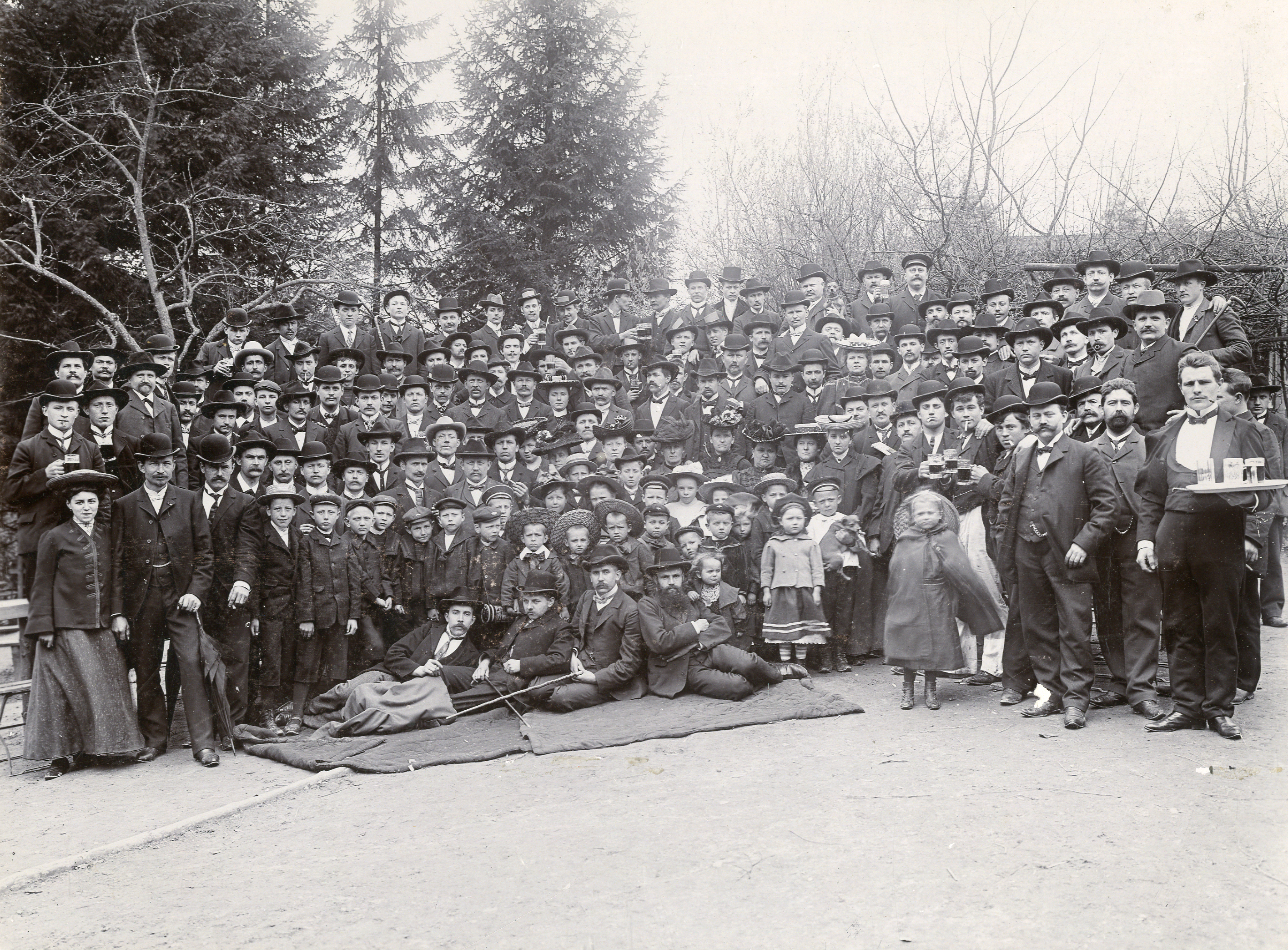 Die zweite Veranstaltung fand in der Regel nachmittags und abends statt, in manchen Jahren aber auch zeitversetzt am darauffolgenden Sonntag. Diese Feiern sprachen Arbeiterinnen und Arbeiter an, die nicht frei bekamen und ihren Arbeitsplatz nicht gefährden wollten, aber von Beginn an auch Familien; bei diesen Festen standen gesellige, unterhaltende Aspekte im Vordergrund. Natürlich wurden auch kürzere politische Vorträge gehalten, zudem schmückten rote Fahnen die Festhallen, Wirtschaften und Gärten und Lampions mit einer „demonstrativen 8“ warben für den Achtstundentag. Aber das Hauptprogramm wurde von Kapellen, Gesangs- und Arbeitersportvereinen gestaltet. Gesungen wurden Maienlieder, aber auch jedes Mal die Arbeiter-Marseillaise, ein heute fast unbekanntes Lied, das Jacob Audorf (1835-1898) 1864 für den Allgemeinen Deutschen Arbeiterverein zur Melodie der französischen Hymne geschrieben hatte. 1905 wurden im Waldlokal „Stiller Frieden“ sogar Erinnerungsfotos gemacht, die, so hoffte das Komitee, als eine „Neuerung im Maifeierprogramm […] hoffentlich ein ständiger Programmpunkt bleiben wird“. Die abendliche Maifeier war getragen von einer Arbeiterkultur, die sich als Gegenöffentlichkeit zur bürgerlichen Kultur verstand. Sie sollte das Gemeinsame betonen und für die Sozialdemokratie werben. Denn vor dem Ersten Weltkrieg waren Maifeiern nicht Protestformen der Gewerkschaften, sondern der politischen Arbeiterbewegung, und das war die Sozialdemokratie.