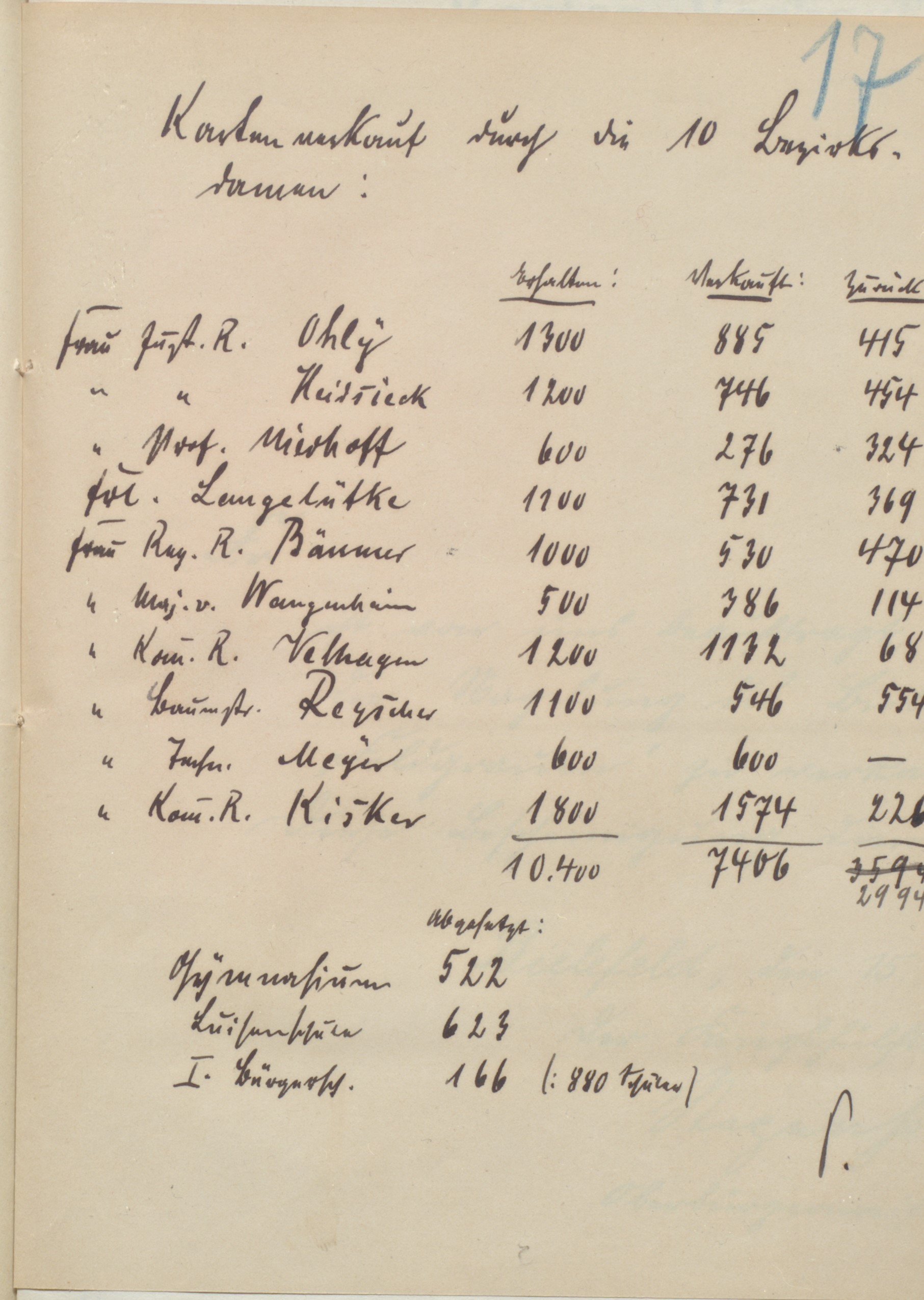 Nach Abzug der Kosten hatte der „Wehrmann“ 18.043,94 Mark für die „Stiftung für Kriegsbeschädigte und Kriegshinterbliebene der Stadt Bielefeld“ und die Stiftung „Heimatdank“ erbracht. Eine im November 1916 eingegangene 1.000-Mark-Spende des vormaligen Anker-Unternehmers Karl Reyscher (1853-1932) sorgte nur für eine kurzfristige Belebung. Die Schlussabrechnung vermerkt präzise die Einnahmen und Ausgaben. Die Erträge lagen demnach bei 24.039,71 Mark, von denen 17.929,30 Mark auf verkaufte Nägel entfielen, 2.826,50 Mark auf Ansichtskarten, der Rest vor allem auf Spenden, Konzerterlöse und Zinserträge aus gezeichneten Kriegsanleihen, denn für die 3. Kriegsanleihe wurden 14.610 Mark verausgabt für die 8. schließlich 5.860 Mark. Bereinigt um diese Anleihe-Ausgaben standen auf der Ausgabenseite 2.932,14 Mark und damit ein Restbestand von 637,57 Mark. Für den guten Zweck war zwar erfolgreich gesammelt worden, das eigentliche Ziel jedoch wurde verfehlt. Statt anvisierter 60.000 Nägel wurden nur rund 22.270 verkauft. Bielefeld hatte es nicht geschafft, aus dem „Feldgrauen“ einen vollständig „Eisernen“ zu machen.