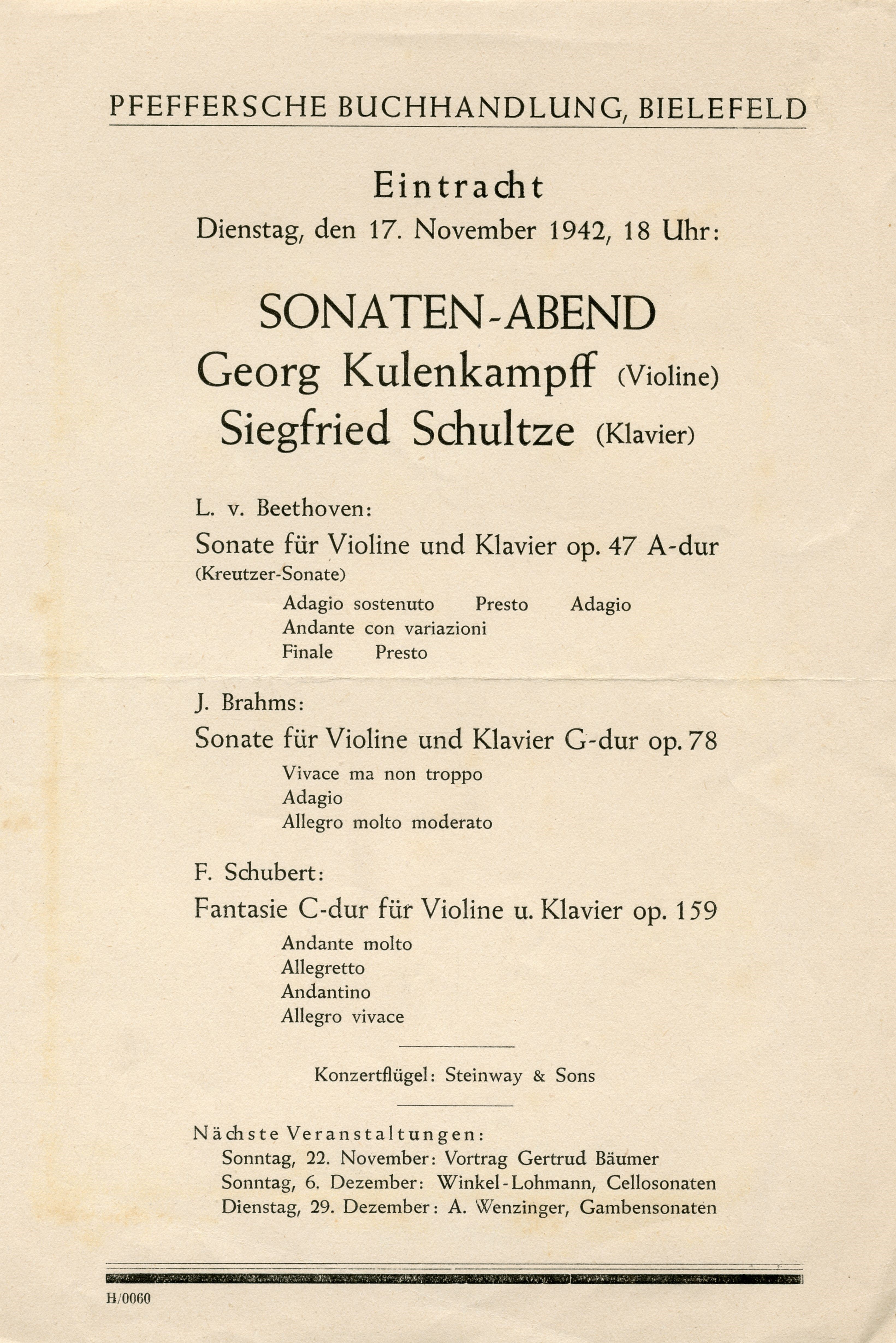 Programm zu einem Sonaten-Abend (Stadtarchiv Bielefeld, Bestand 400,10/Zeitgeschichtliche Sammlung, Nr. 6054)