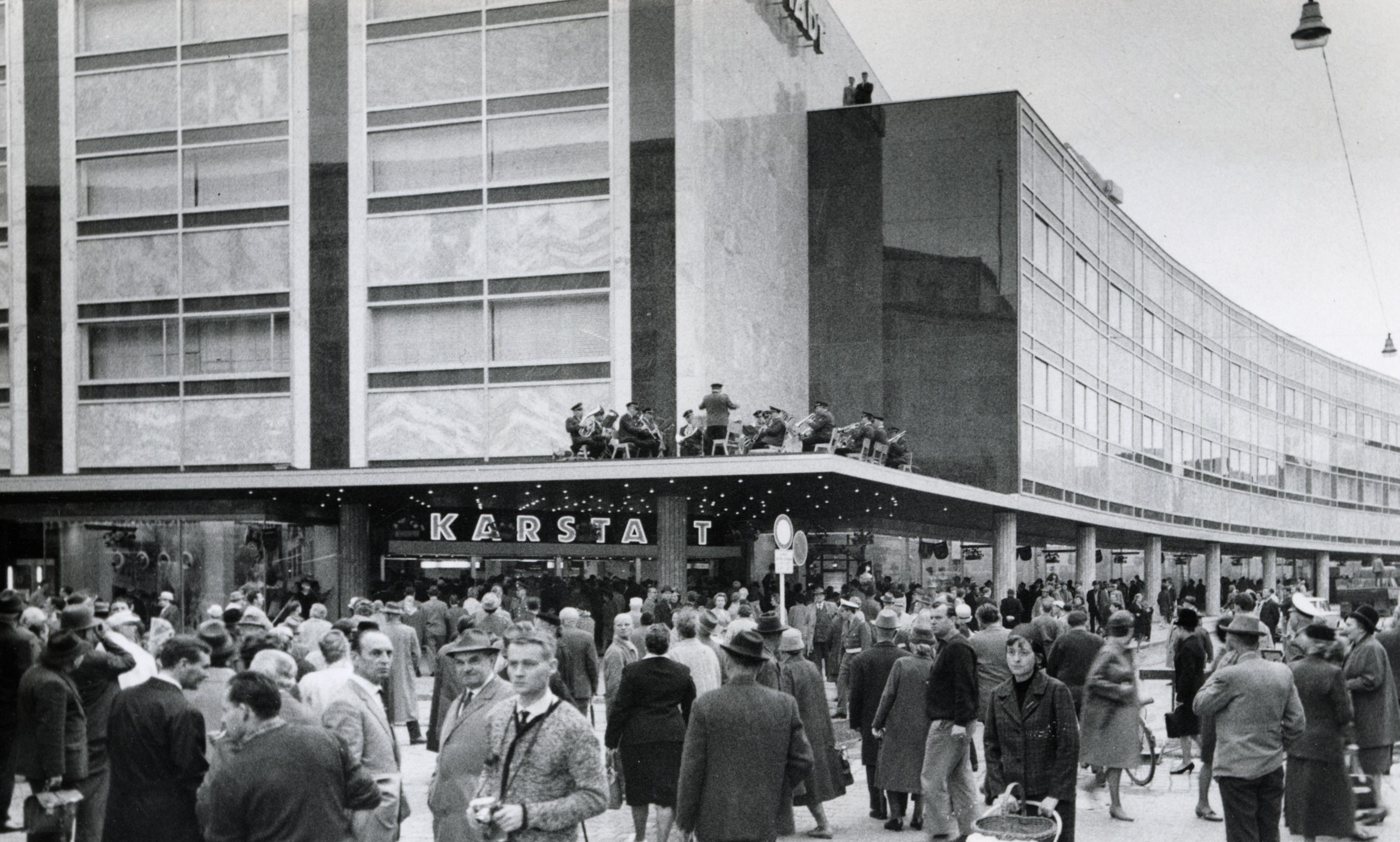 Am 23. April 1964 erlebte das neue Kaufhaus seinen ersten regulären Öffnungstag. Zu den Klängen der auf dem Vordach über dem Haupteingang platzierten Musikkappelle Albert Bartels, die bereits das Richtfest musikalisch untermalt hatte, strömten ab 9.30 Uhr zwischen 80.000 und 90.000 Besucherinnen und Besucher aus Stadt und Umland in die frisch eröffnete Karstadt-Filiale. Eigentlich war die Öffnung der Tore für 10 Uhr vorgesehen gewesen, jedoch hatte sich bereits um 8 Uhr eine derartige – laut Freier Presse vorwiegend aus „Hausfrauen“ bestehende – Menschenmenge vor dem Filialeingang versammelt, dass sich die Filialdirektion für eine frühzeitige Öffnung entschieden hatte. „Hausfrauen aus Stadt und Land hatten gestern einen Großkampftag“, kommentierte die Westfälische Zeitung das Geschehen. Wer jedoch an den Schaufenstern des Warenhauses verweilte, konnte einen Spaziergang durch die zum damaligen Zeitpunkt 750-jährige Geschichte Bielefelds unternehmen. So wurde in den 24 Schaufenstern an historische Zäsuren und Ereignisse der Stadt am Teutoburger Wald erinnert – vom Bau der Sparrenburg um 1250 über die Entdeckung einer Heilquelle auf dem Kesselbrink im Jahr 1666 und die von Kurfürst Friedrich Wilhelm von Brandenburg erlassene Leggeordnung von 1678 bis zur ersten Herstellung von Bielefelder Notgeld 1917.