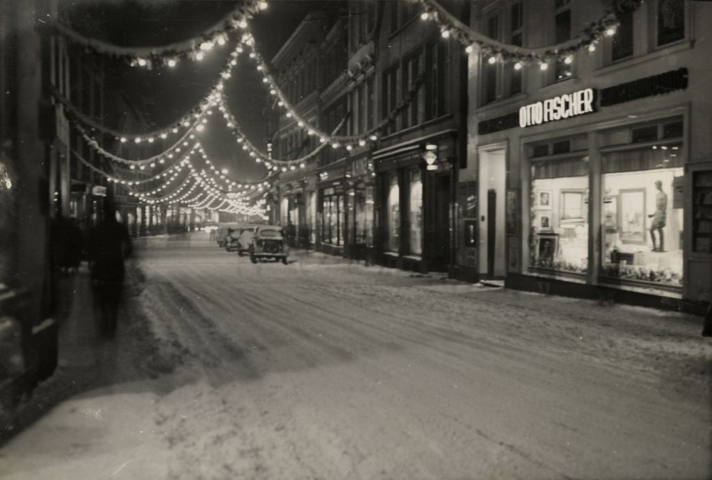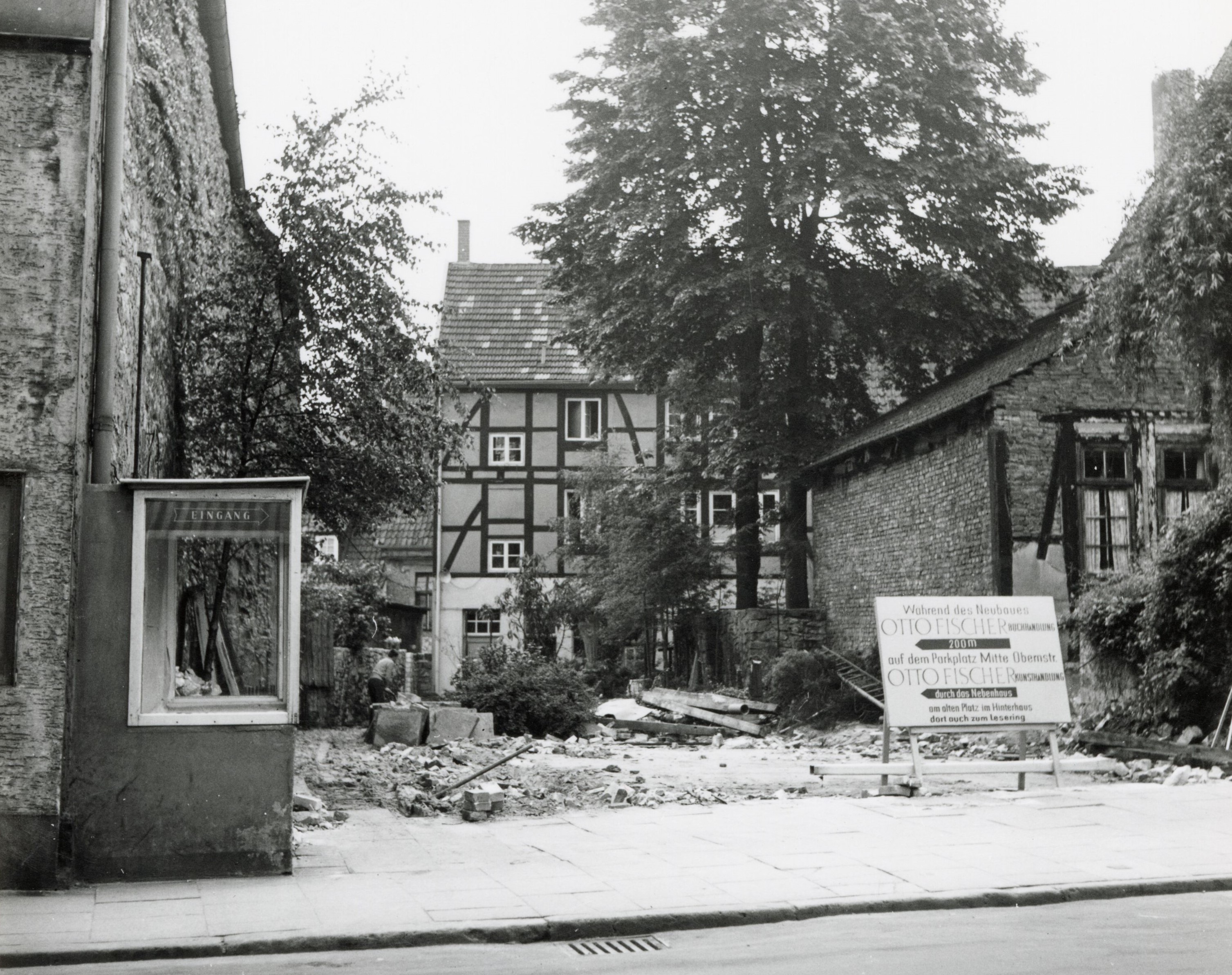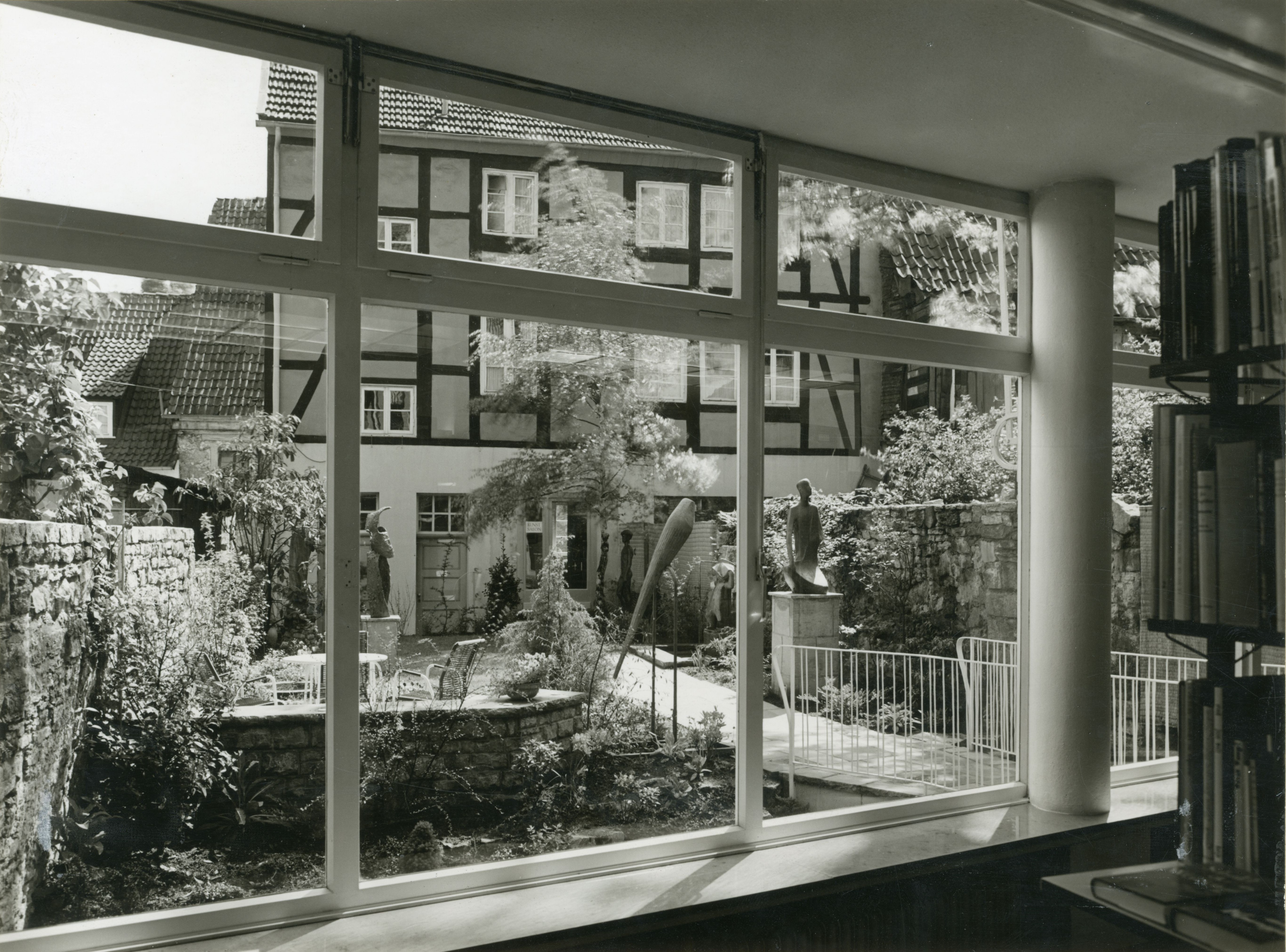 Das Jahr 1906 brachte schließlich eine entscheidende Wegmarke in der noch jungen Unternehmensgeschichte: Am 10. Oktober erfolgte die Neueröffnung des Geschäfts in der Obernstraße 47, nicht weit von der für Bielefeld ebenfalls bedeutenden Pfefferschen Buchhandlung gelegen. Fischer hatte die Geschäftsräume im Juli des Jahres für rund 84.000 Mark vom Kolonialwarenhändler Wilhelm Plöger (1840-1913) erworben und nach einer vollständigen Sanierung eingeweiht. Dort verblieb das Geschäft bis zu seiner Auflösung – lediglich unterbrochen durch die kriegsbedingte Auslagerung nach 1945. Mit diesem Standort erhielt auch der Kunstsalon erstmals eine dauerhafte räumliche Verankerung. Eine anschauliche Beschreibung der neuen Räumlichkeiten verdanken wir erneut Dr. Heinrich Becker: „Durch die Buchhandlung im Vorderraum schreitend, mit ihren großen Beständen an literarischen und künstlerischen Kostbarkeiten, betrat man, zwei oder drei Stufen ansteigend, den nach dem Garten zu liegenden langrechteckigen Kunstsalon. […] Das breite Südfenster erhielt bald den wirkungsvollen Schmuck dezent farbiger Glasmalerei im Stil der Zeit von der Hand des jung an die Kunstgewerbeschule berufenen Karl Muggly […]. Eine schmale Tür führte vorne links in das kleine Büro des unermüdlich tätigen Mannes.“