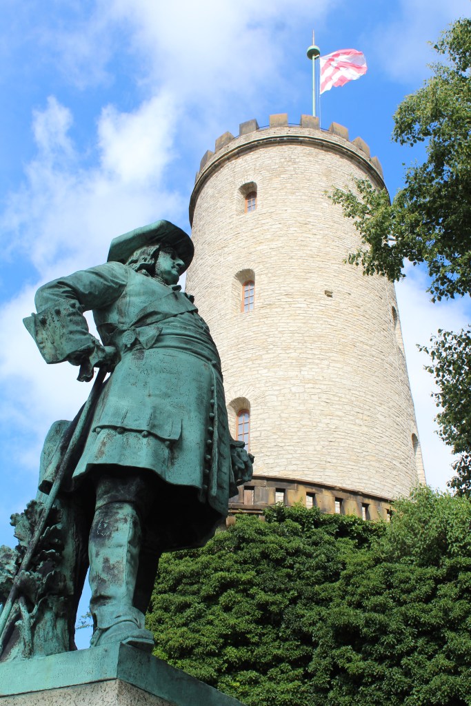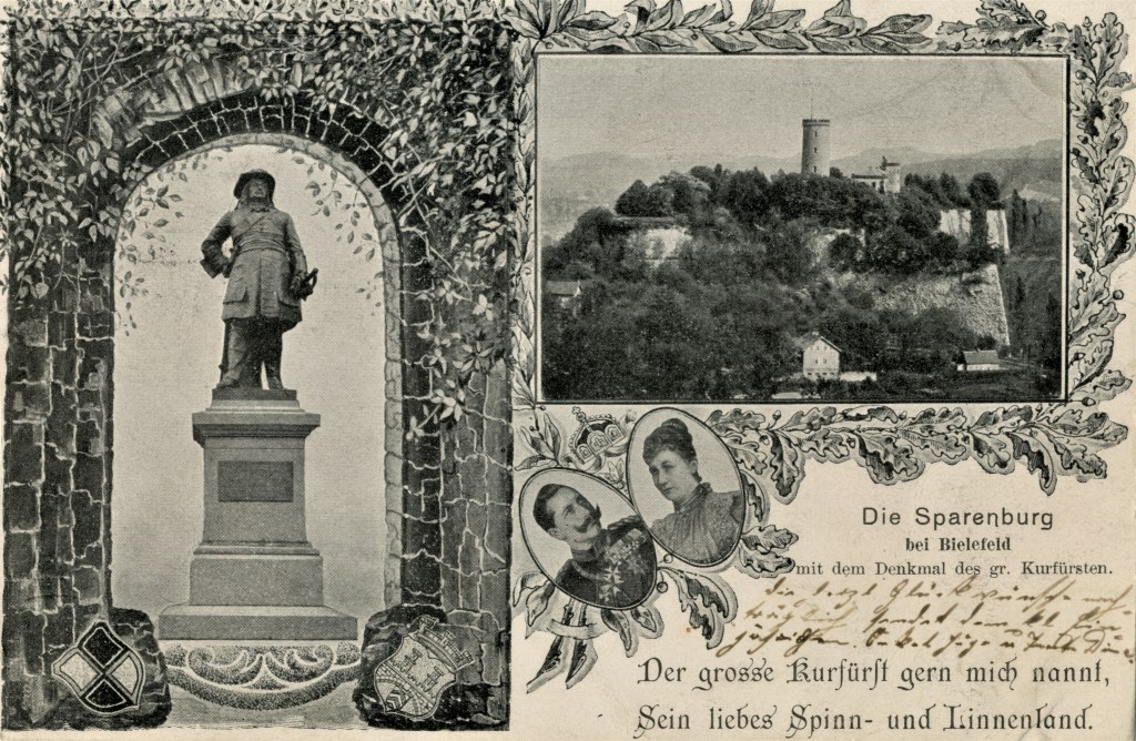 Auf der Sparrenburg in Bielefeld erhebt sich seit Sommer 1900 das Denkmal „Großer Kurfürst“, das an Kurfürst Friedrich Wilhelm von Brandenburg erinnert. Dieser galt schon den Zeitgenossen als bedeutender Landesherr, der das durch den Dreißigjährigen Krieg (1618-1648) gebeutelte und territorial zersplitterte Kurfürstentum finanziell, wirtschaftlich und administrativ konsolidierte, durch Bündnisse und militärisches Fortune behauptete und einen unerwarteten Aufstieg anbahnte, der Preußen zu einer Vormachtposition in Deutschland und Akteur im europäischen Mächtekonzert führte, stets begleitet vom zentralen Problem, „dass es dieses Gefühl der Verwundbarkeit niemals überwinden konnte.“ (Christopher Clark, 2008). Zum preußischen Territorienkonglomerat zählte seit 1609/1647/1666 auch die Grafschaft Ravensberg mit Bielefeld. Der Kurfürst hielt sich mehrfach in der Stadt auf, zwei seiner Kinder aus zweiter Ehe wurden auf der Sparrenburg geboren, blieben aber aufgrund frühen Ablebens dynastisch bedeutungslos. Das Denkmal übernahm für die Bielefelder damit eine eher nostalgisch-lokalpatriotische Funktion, während die Anwesenheit Kaiser Wilhelms II. bei der Enthüllung in der städtischen Erinnerung nach 1918 weitgehend verblasste.