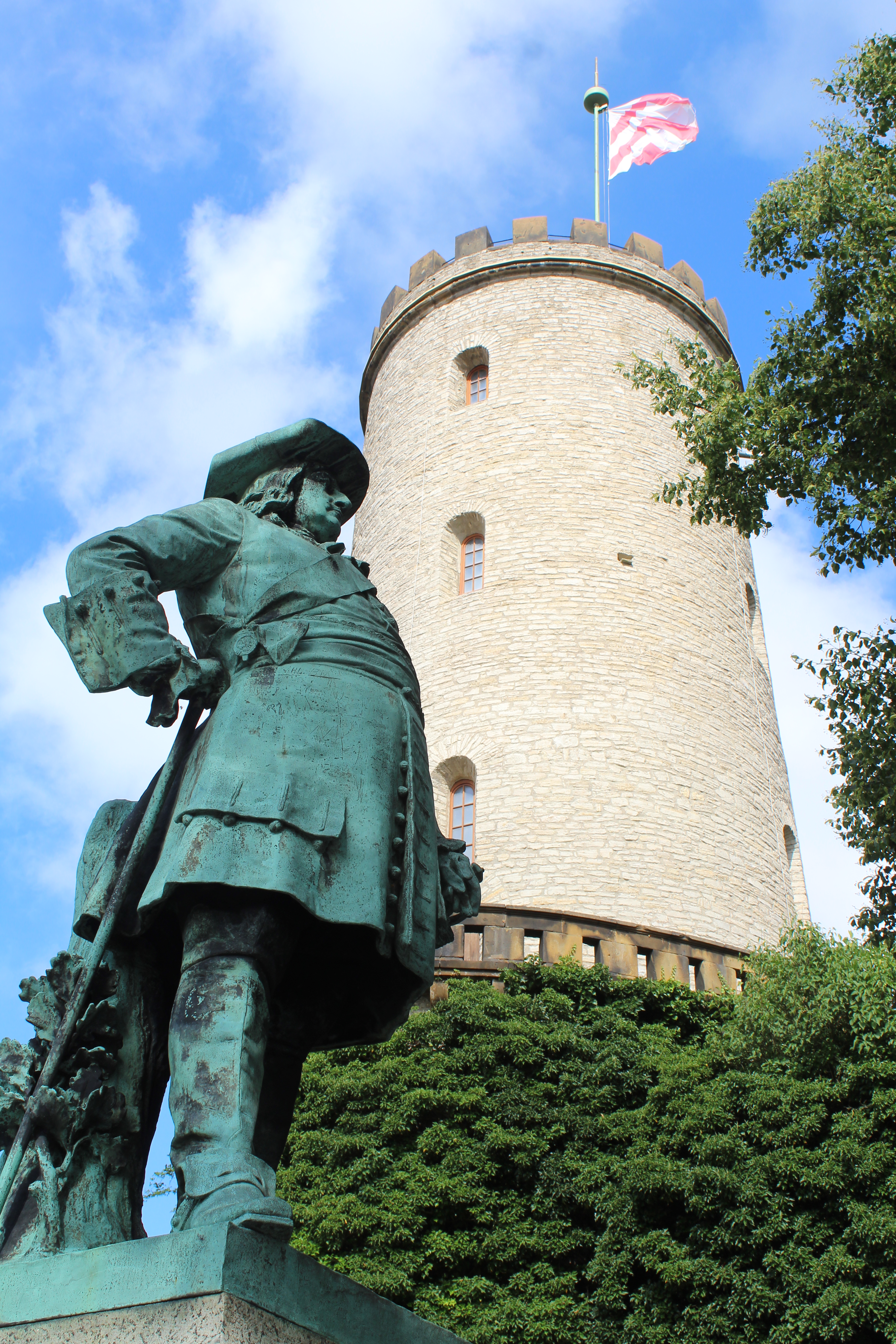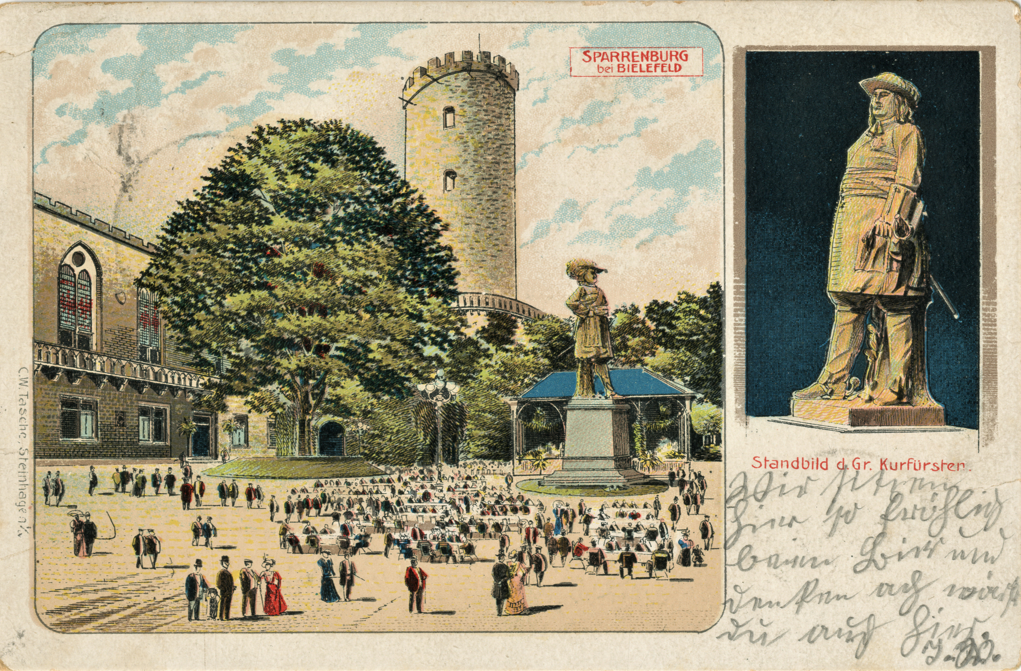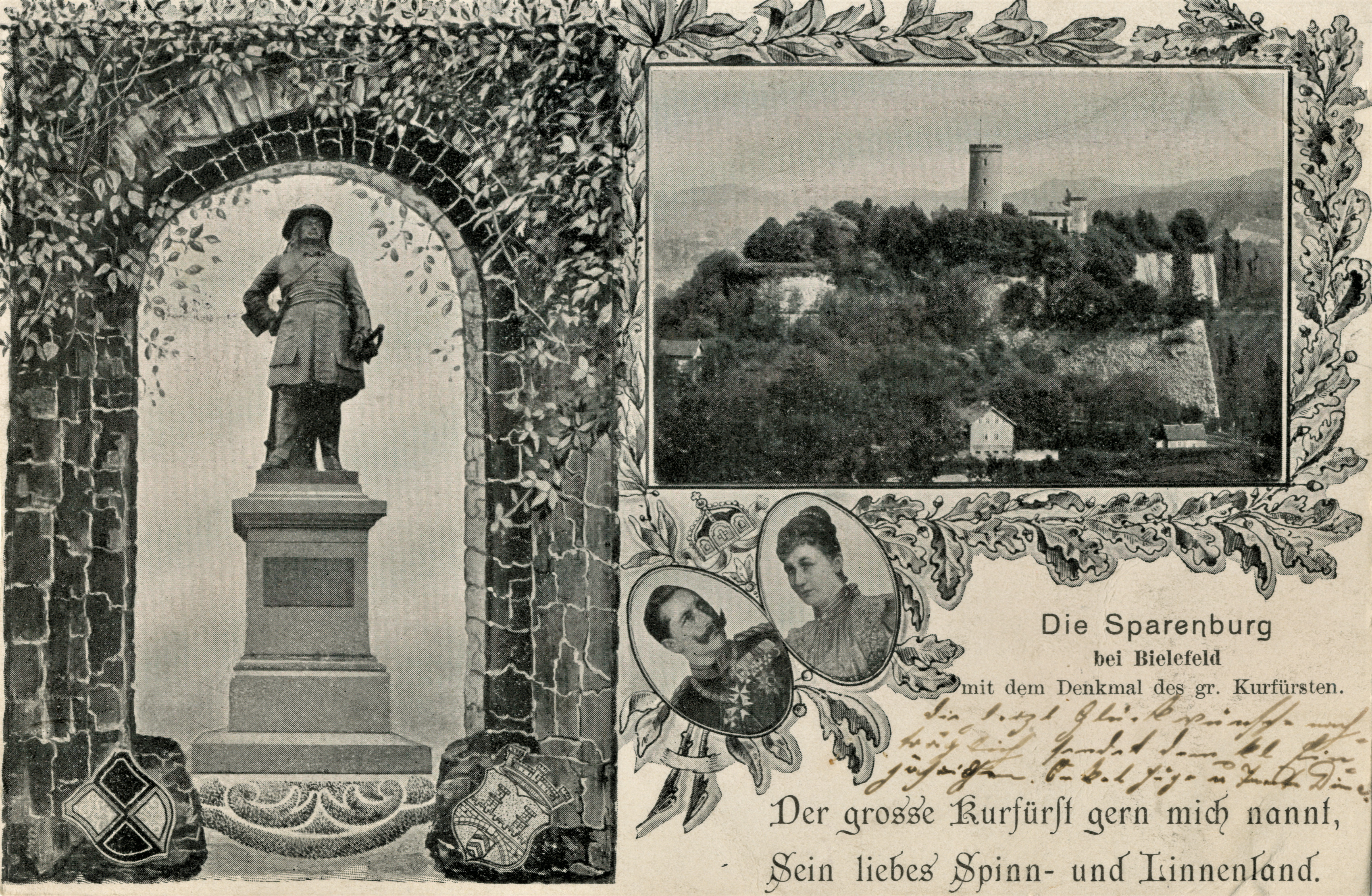 Auf der Sparrenburg in Bielefeld erhebt sich seit Sommer 1900 das Denkmal „Großer Kurfürst“, das an Kurfürst Friedrich Wilhelm von Brandenburg erinnert. Dieser galt schon den Zeitgenossen als bedeutender Landesherr, der das durch den Dreißigjährigen Krieg (1618-1648) gebeutelte und territorial zersplitterte Kurfürstentum finanziell, wirtschaftlich und administrativ konsolidierte, durch Bündnisse und militärisches Fortune behauptete und einen unerwarteten Aufstieg anbahnte, der Preußen zu einer Vormachtposition in Deutschland und Akteur im europäischen Mächtekonzert führte, stets begleitet vom zentralen Problem, „dass es dieses Gefühl der Verwundbarkeit niemals überwinden konnte.“ (Christopher Clark, 2008). Zum preußischen Territorienkonglomerat zählte seit 1609/1647/1666 auch die Grafschaft Ravensberg mit Bielefeld. Der Kurfürst hielt sich mehrfach in der Stadt auf, zwei seiner Kinder aus zweiter Ehe wurden auf der Sparrenburg geboren, blieben aber aufgrund frühen Ablebens dynastisch bedeutungslos. Das Denkmal übernahm für die Bielefelder damit eine eher nostalgisch-lokalpatriotische Funktion, während die Anwesenheit Kaiser Wilhelms II. bei der Enthüllung in der städtischen Erinnerung nach 1918 weitgehend verblasste.