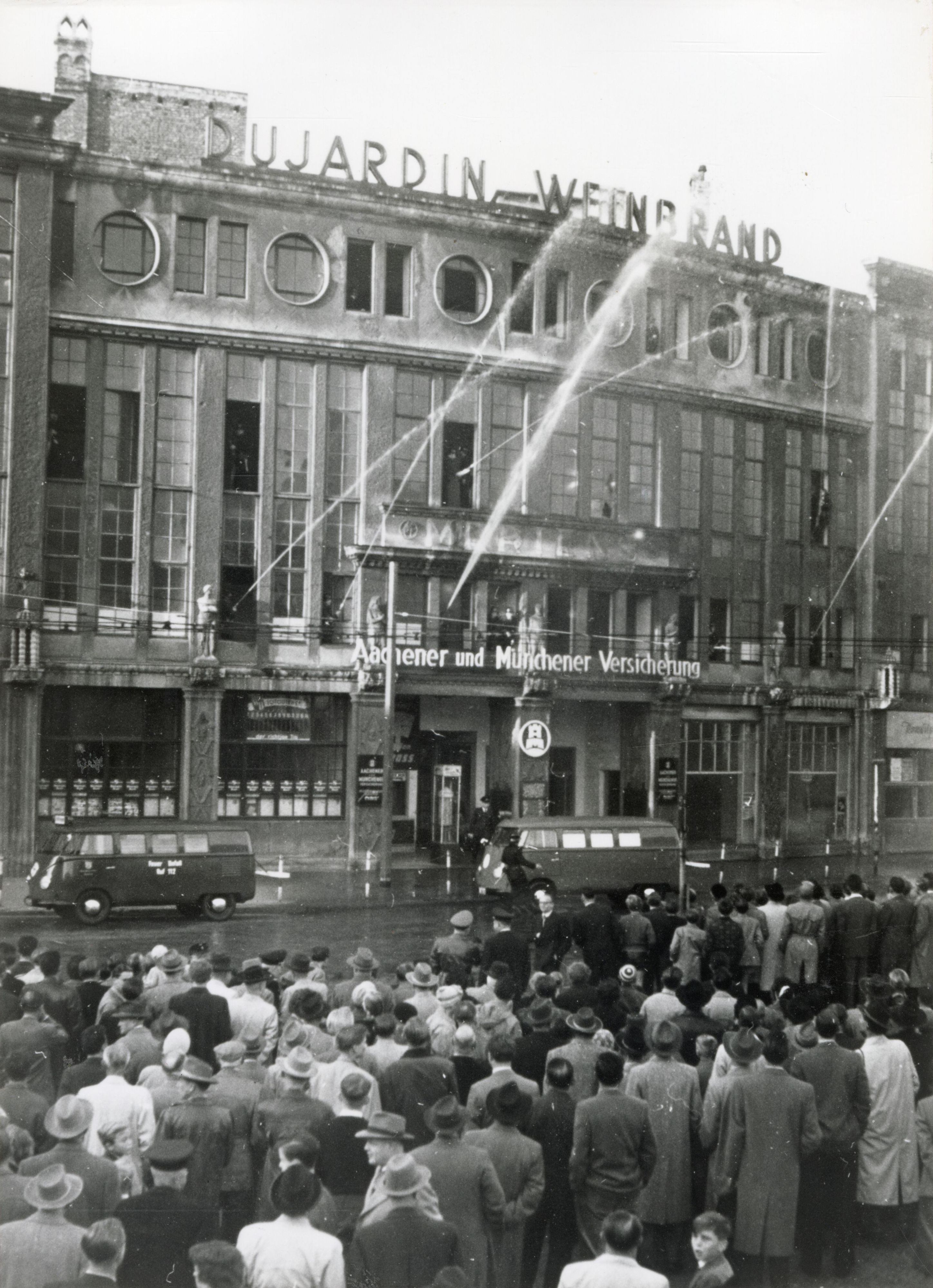 Man wollte vor dem Beginn der Frostperiode mit dem Abriss des Gebäudes Niedernstr. 45-47 fertig sein, und das gelang auch. Zwar hatten schon leichte Nachtfröste eingesetzt, aber über Tag lagen die Temperaturen noch deutlich über dem Gefrierpunkt. Vier Tage vor Heiligabend wurden die letzten Trümmer des Mertenshauses abgefahren, am nächsten Tag, am 21. Dezember 1955, verkündete eine Aktennotiz in der Bauakte des ehemaligen Kaufhauses lapidar: „Die Abbrucharbeiten des oben genannten Gebäudes sind beendet“.