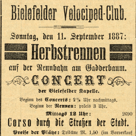 11. September 1887: Das Herbstrennen des Bielefelder Velociped-Klubs