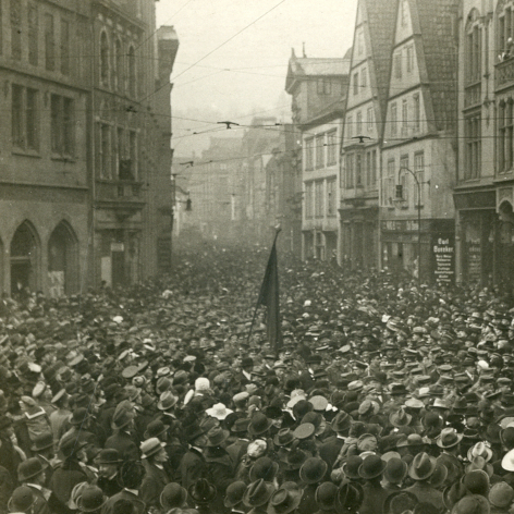 • Bernhard Wagner, Bielefeld • Bereits Anfang 1918 zeigte sich die Unzufriedenheit der Bevölkerung. Die Ernährungslage im vierten Kriegswinter war katastrophal, die Freiheitsrechte massiv eingeschränkt. Ende Januar streikten reichsweit rund eineinhalb Millionen Arbeiterinnen und Arbeiter für „Frieden, Freiheit und Brot”. Anfang Februar berichtete die „Westfälische Zeitung”: „Die Streikbewegung in der Bielefelder Arbeiterschaft […] hat sich … Weiterlesen 9. November 1918: Revolution in Bielefeld